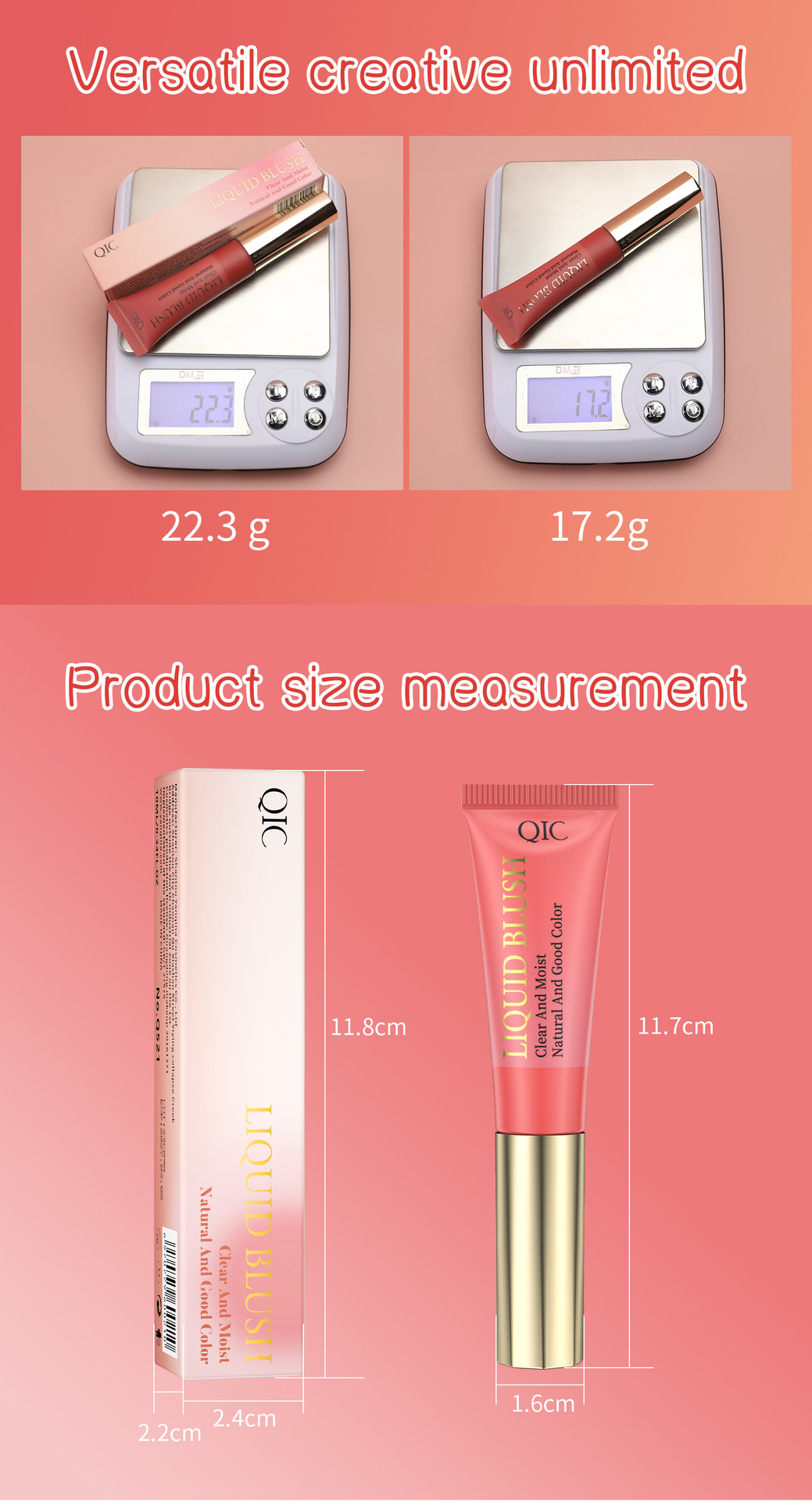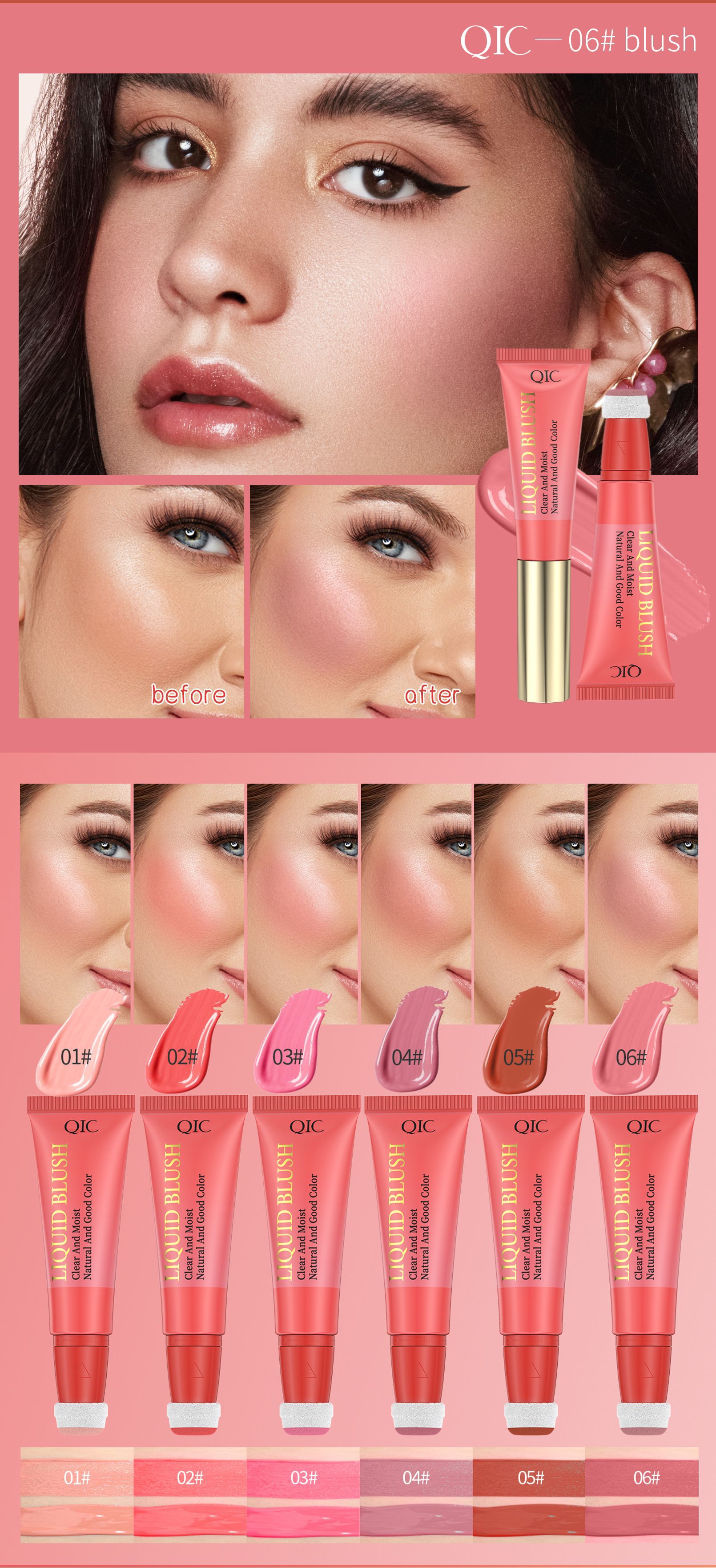 QIC跨境轻透柔色腮红膏保湿水润易推开丝滑持妆液体腮红胭脂美妆专供出口 投诉