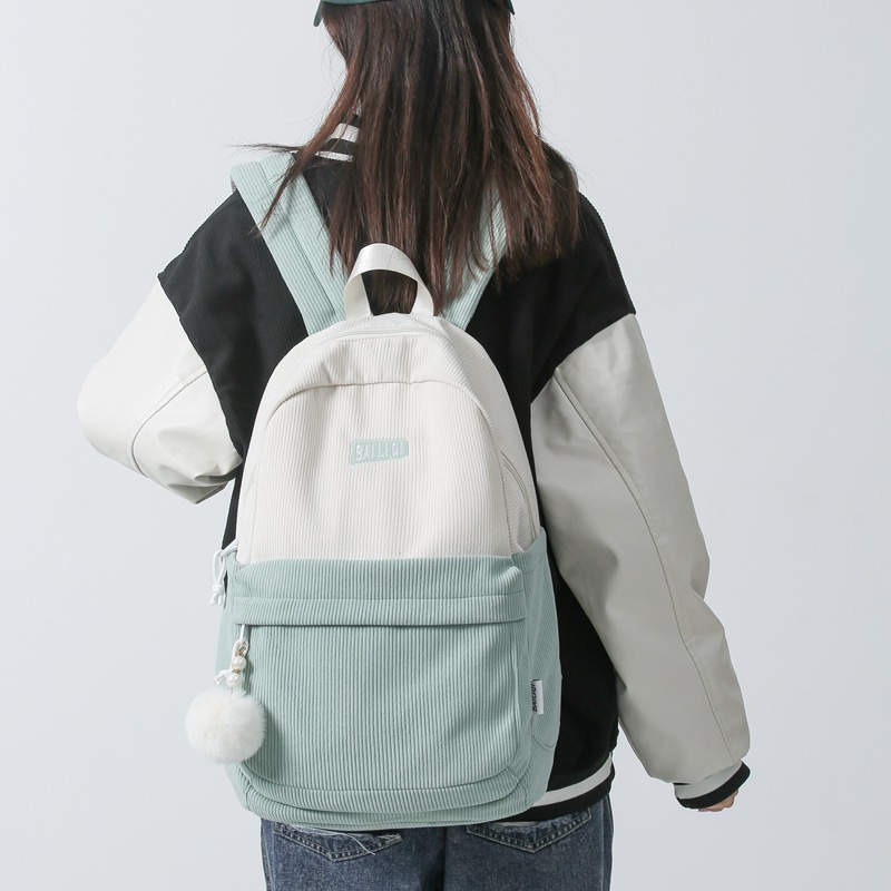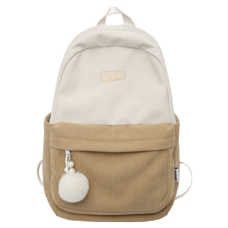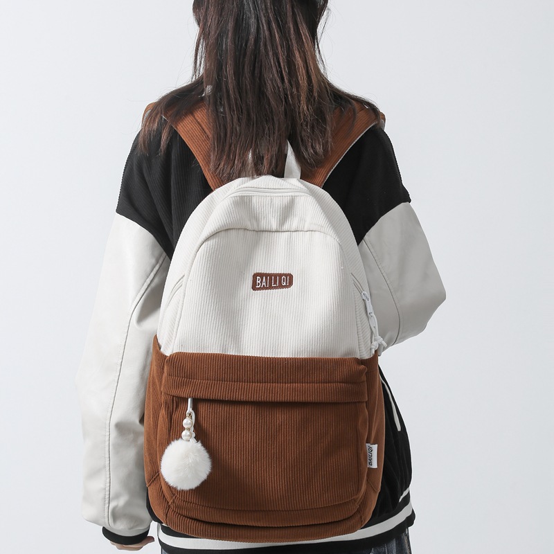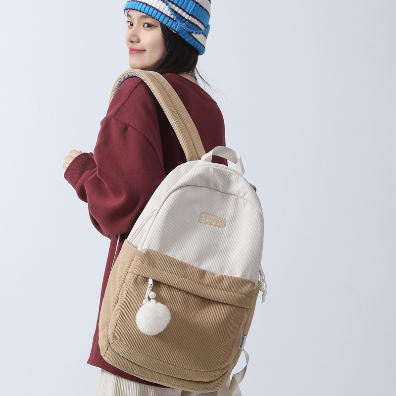 书包大学生秋冬新款条绒双肩包女大容量复古ins睿营森系日韩背包