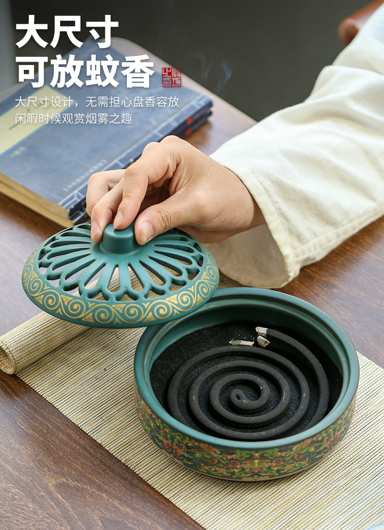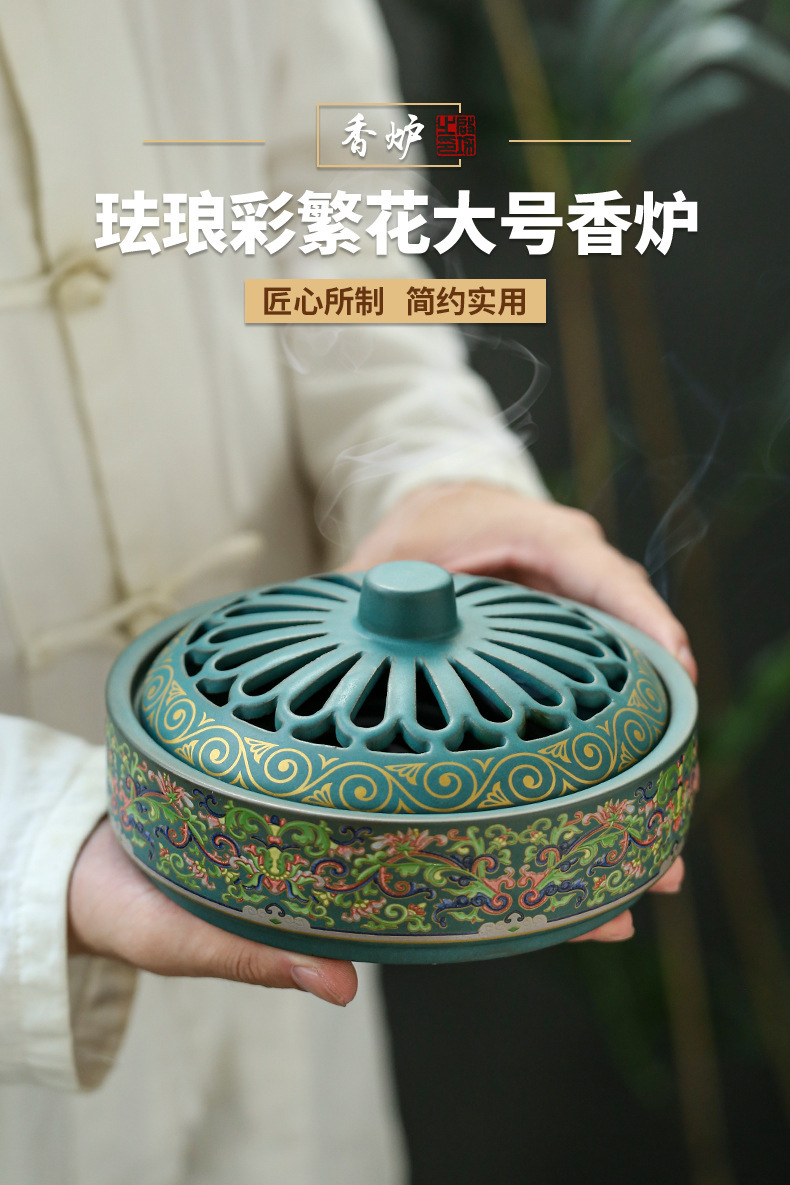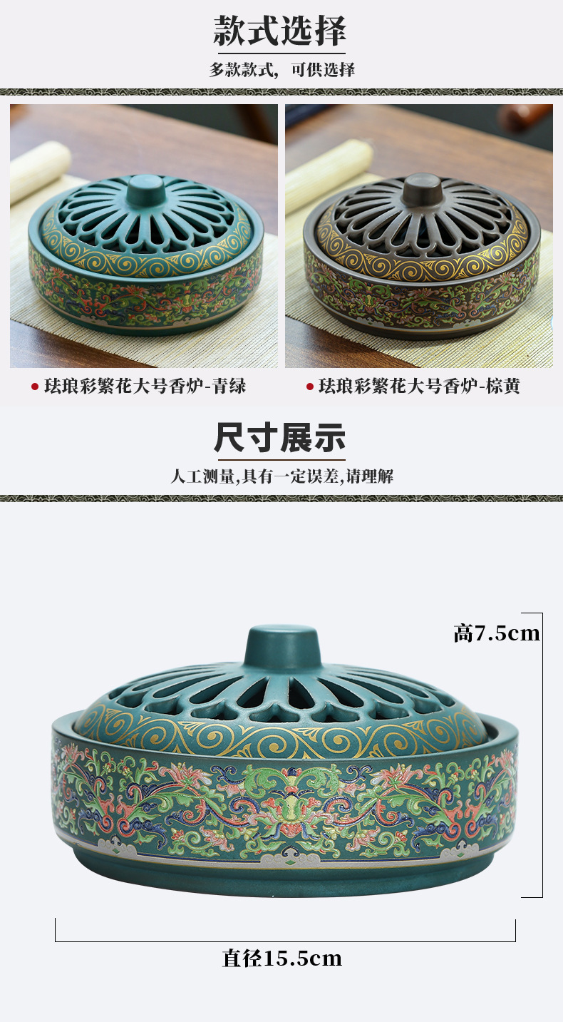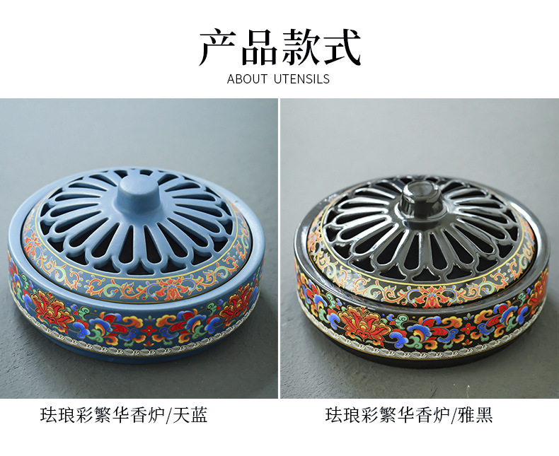 陶瓷景泰蓝盘香炉蚊香炉摆件檀香炉创意家用室内香插香道熏香批发 English | 投诉