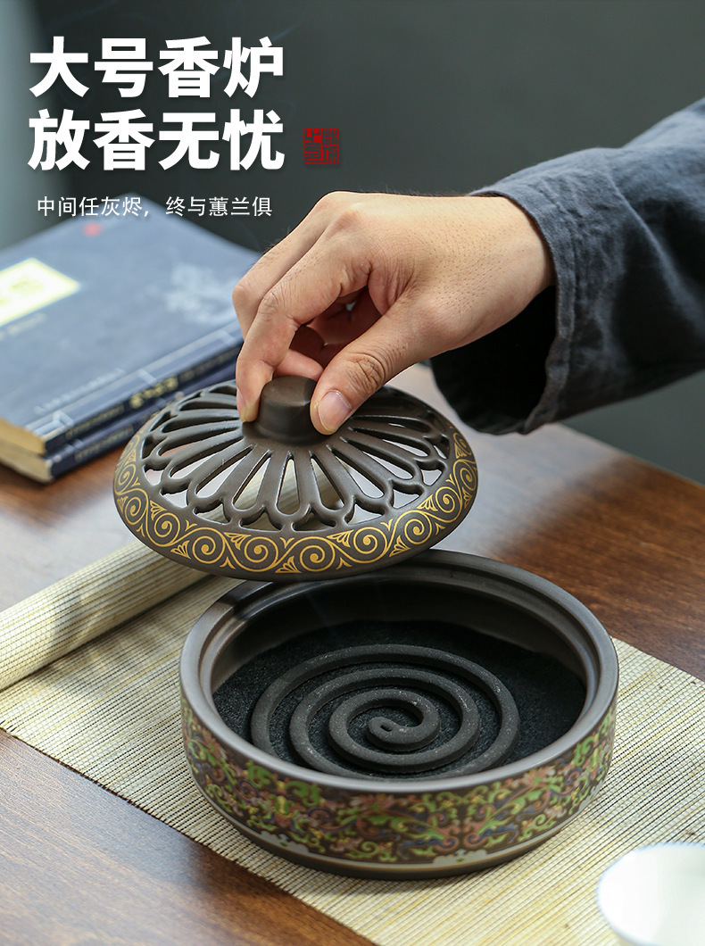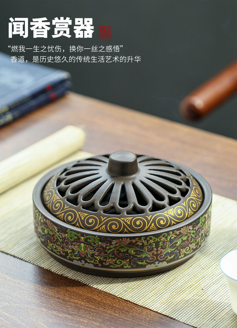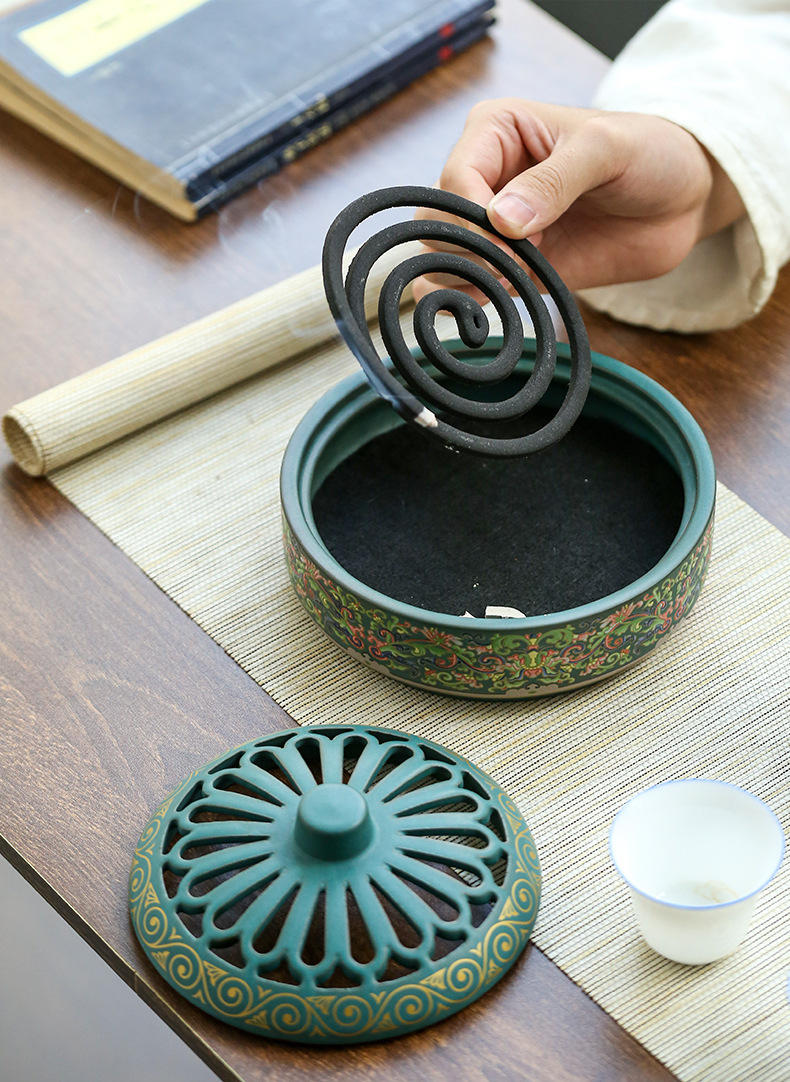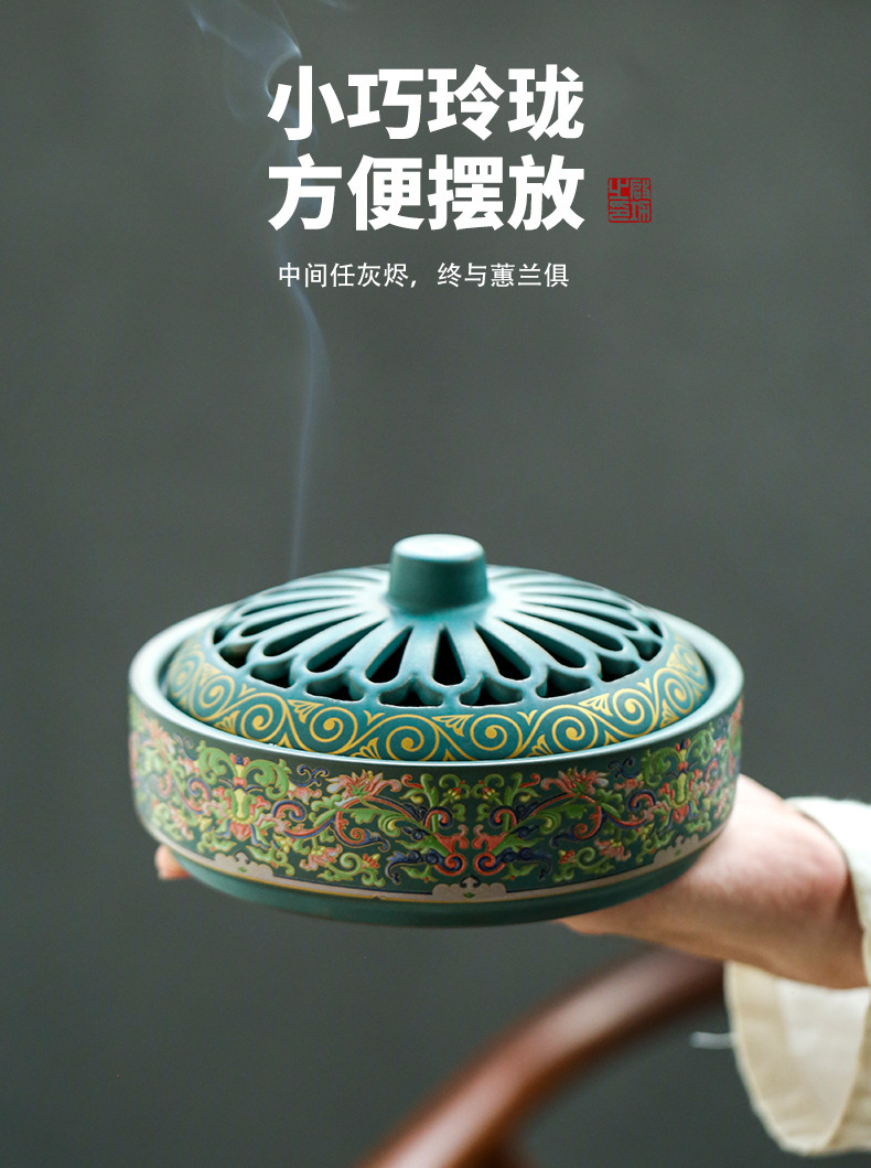 陶瓷景泰蓝盘香炉蚊香炉摆件檀香炉创意家用室内香插香道熏香批发 English | 投诉