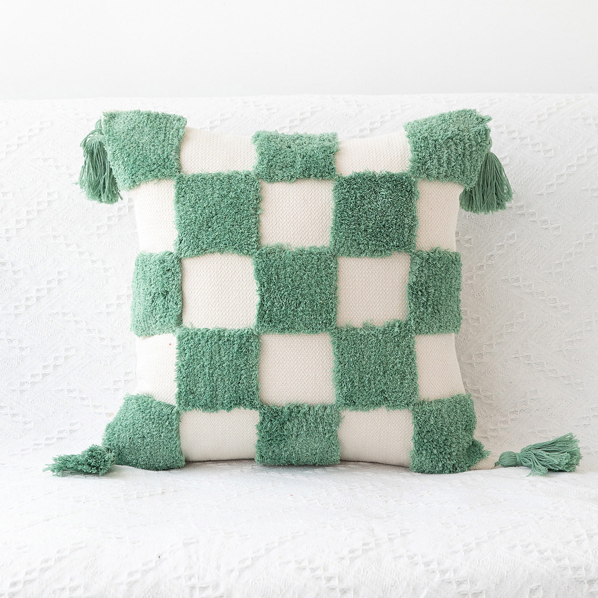 沙发抱枕簇绒彩红抱枕套印度手工编织工艺抱枕家居沙发靠垫可拆卸