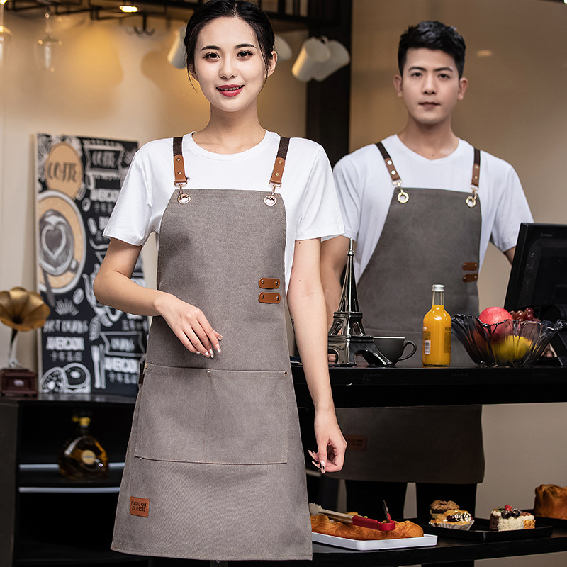 加厚帆布围裙定制logo印字餐饮厨房美甲店花店园艺师专用工作服女