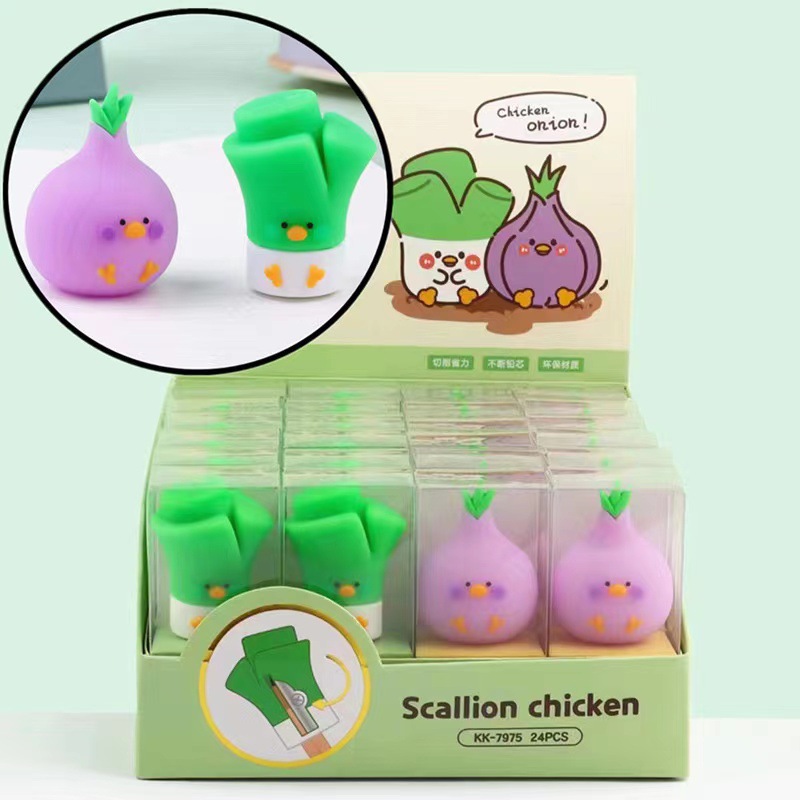 可奇7975硅胶葱葱蔬菜卷笔刀可爱卡通大葱大蒜洋葱笔刨削笔器转笔