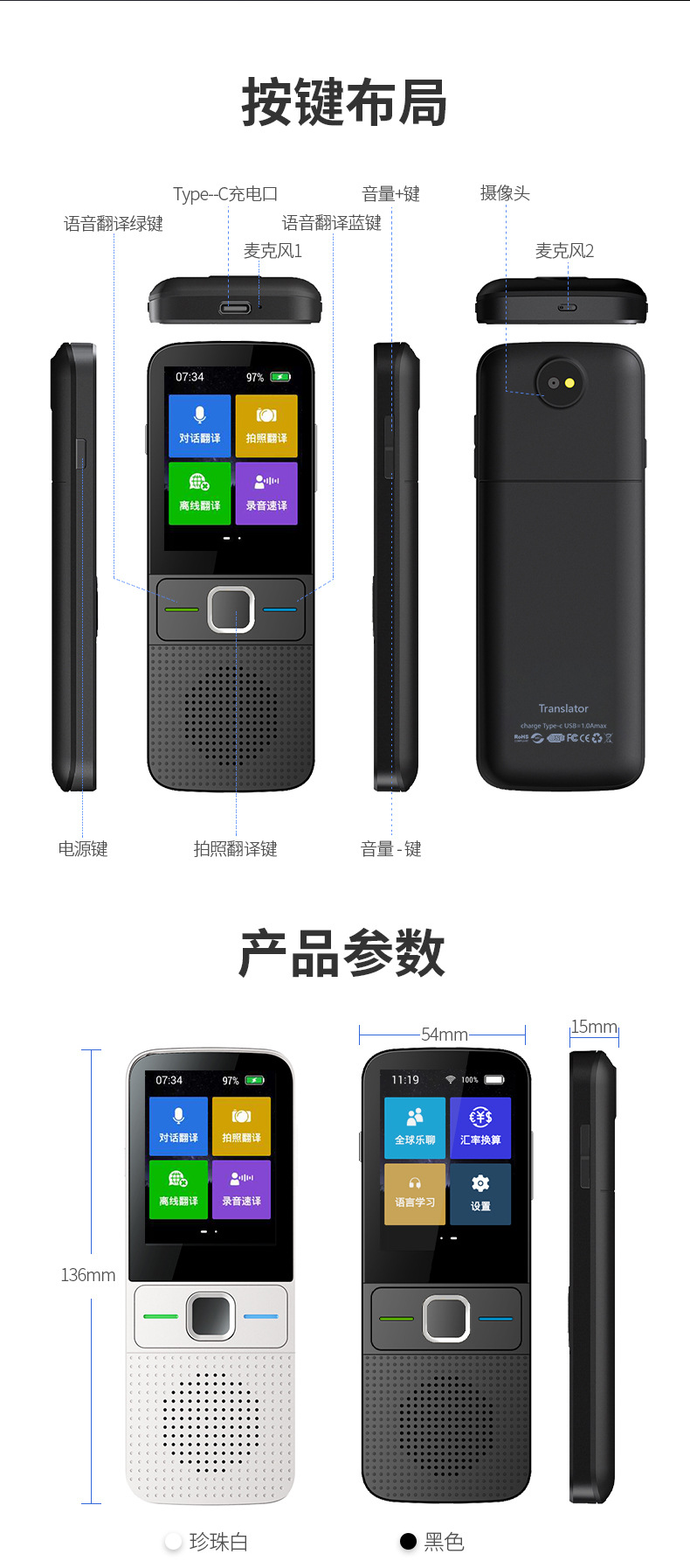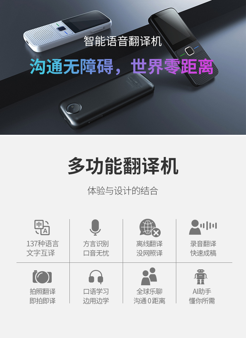 T10AI语音翻译器134种语言互译拍照录音翻译离线精准翻译机
