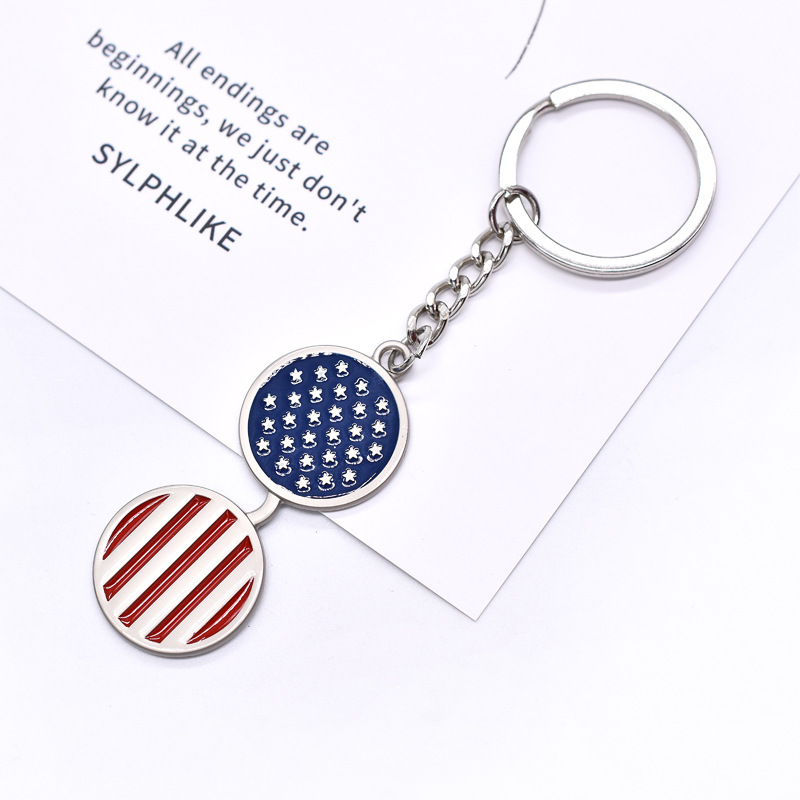 美国独立日国旗创意眼镜款钥匙扣时尚红白蓝锌合金吊坠钥匙扣配件
