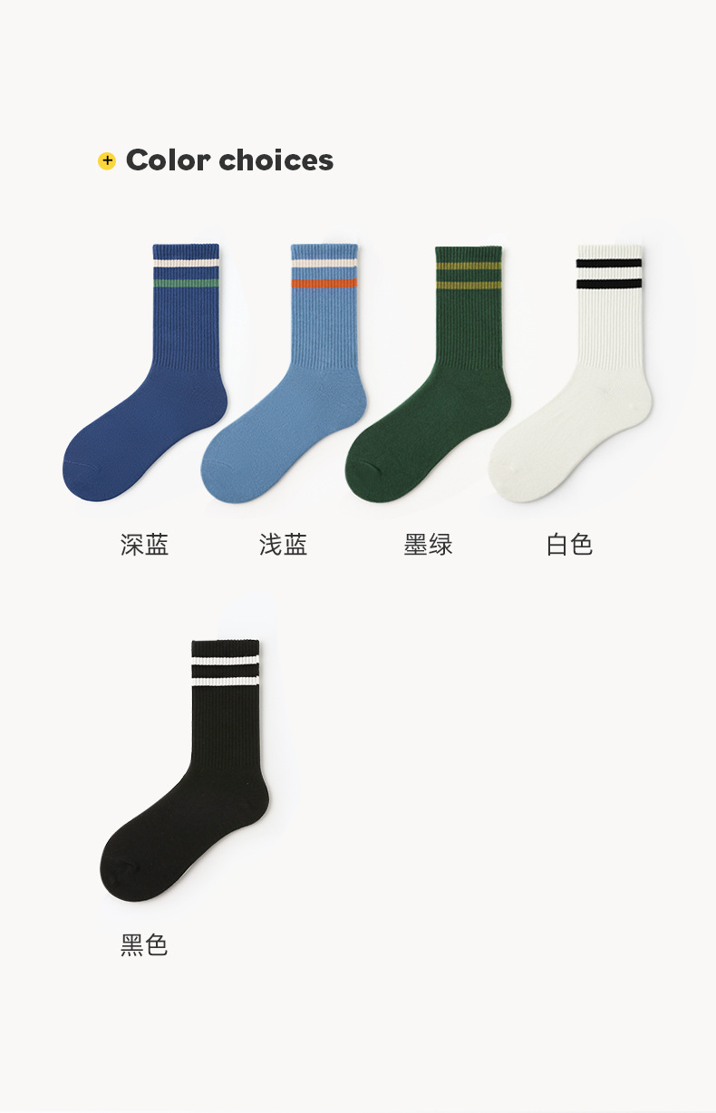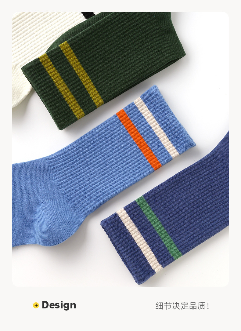 鹿米纯色横杠运动中筒袜透气日系女袜简约外穿棉袜无骨袜子批发