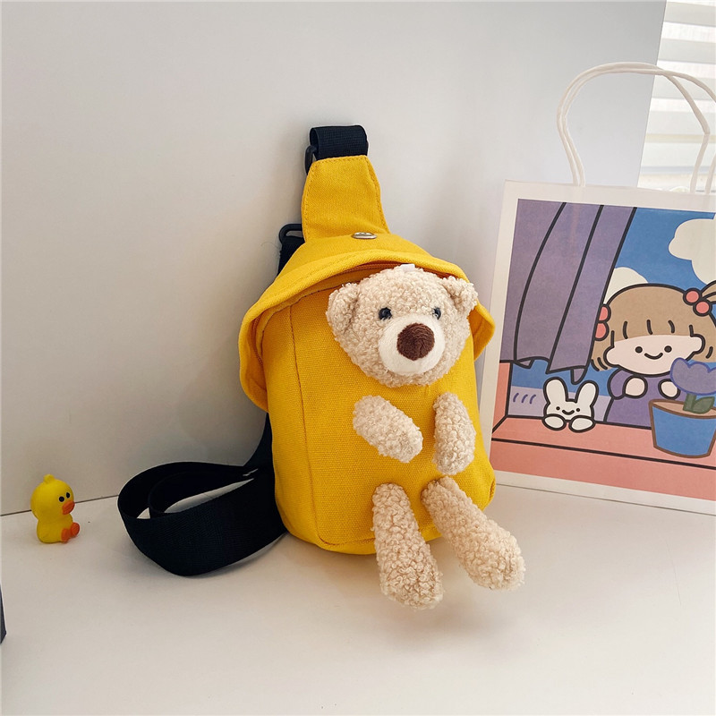 新款韩版斜挎包可爱卡通小熊胸包男女童迷你帆布包儿童小礼品批发