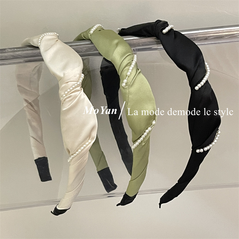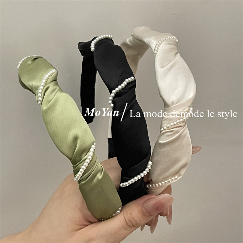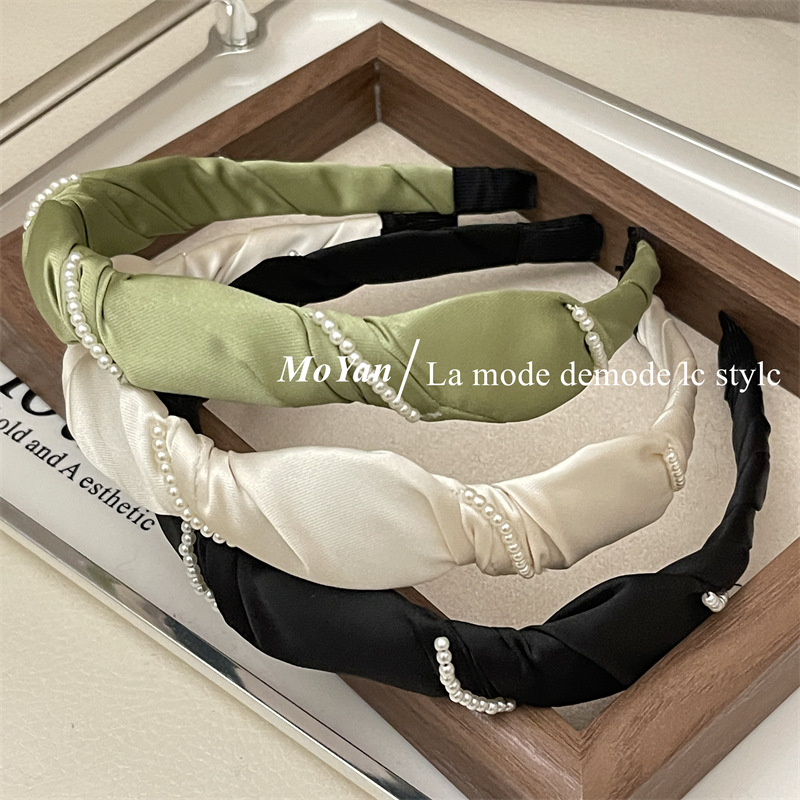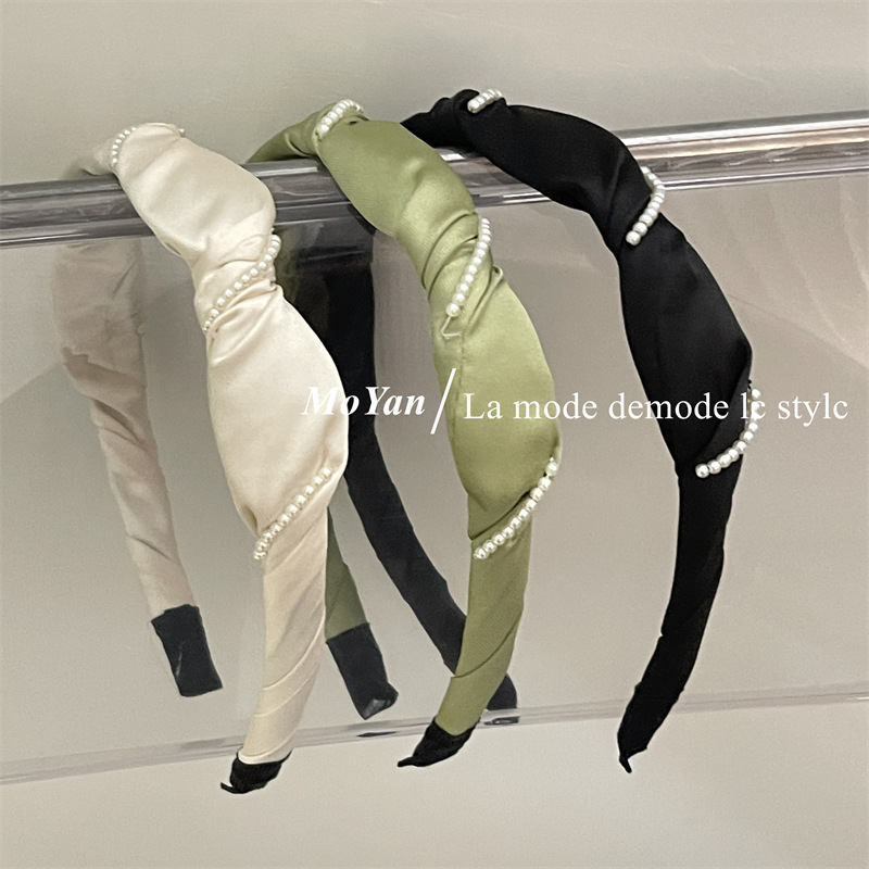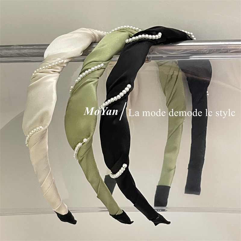 法式优雅珍珠系缠绕手工发箍女洗脸简约发卡韩版气质头箍发饰头饰
