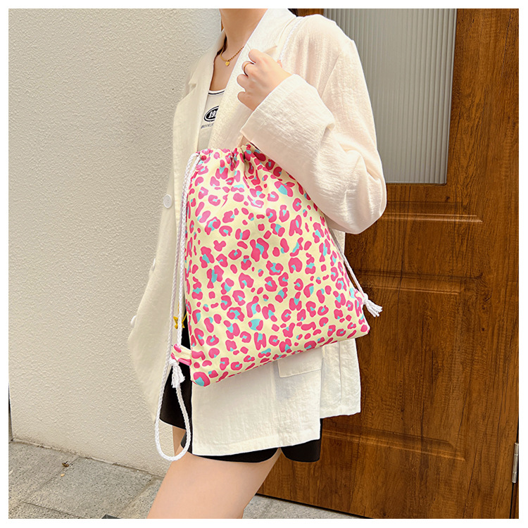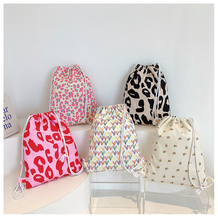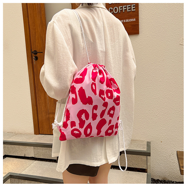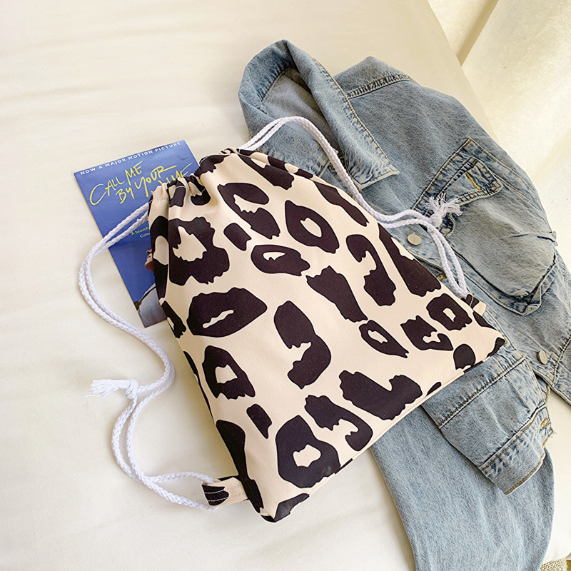 双肩包女日系ins风小清新豹纹印花布包韩版休闲洋气夏季简约背包
