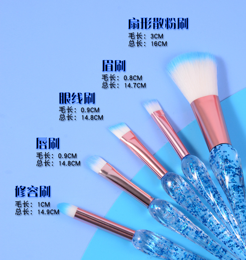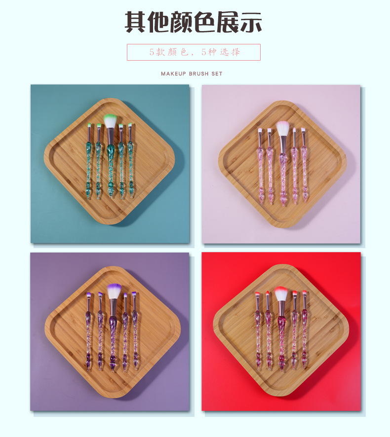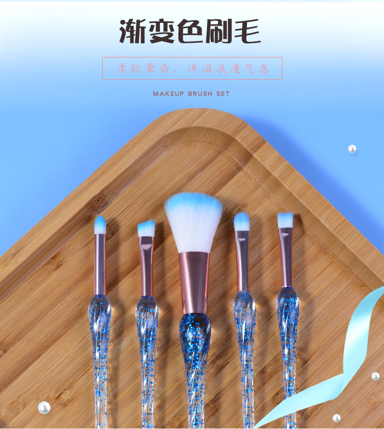 跨境热销5支装化妆刷 水晶刷杆渐变色柔软刷毛腮红刷美妆工具批发 English | 投诉