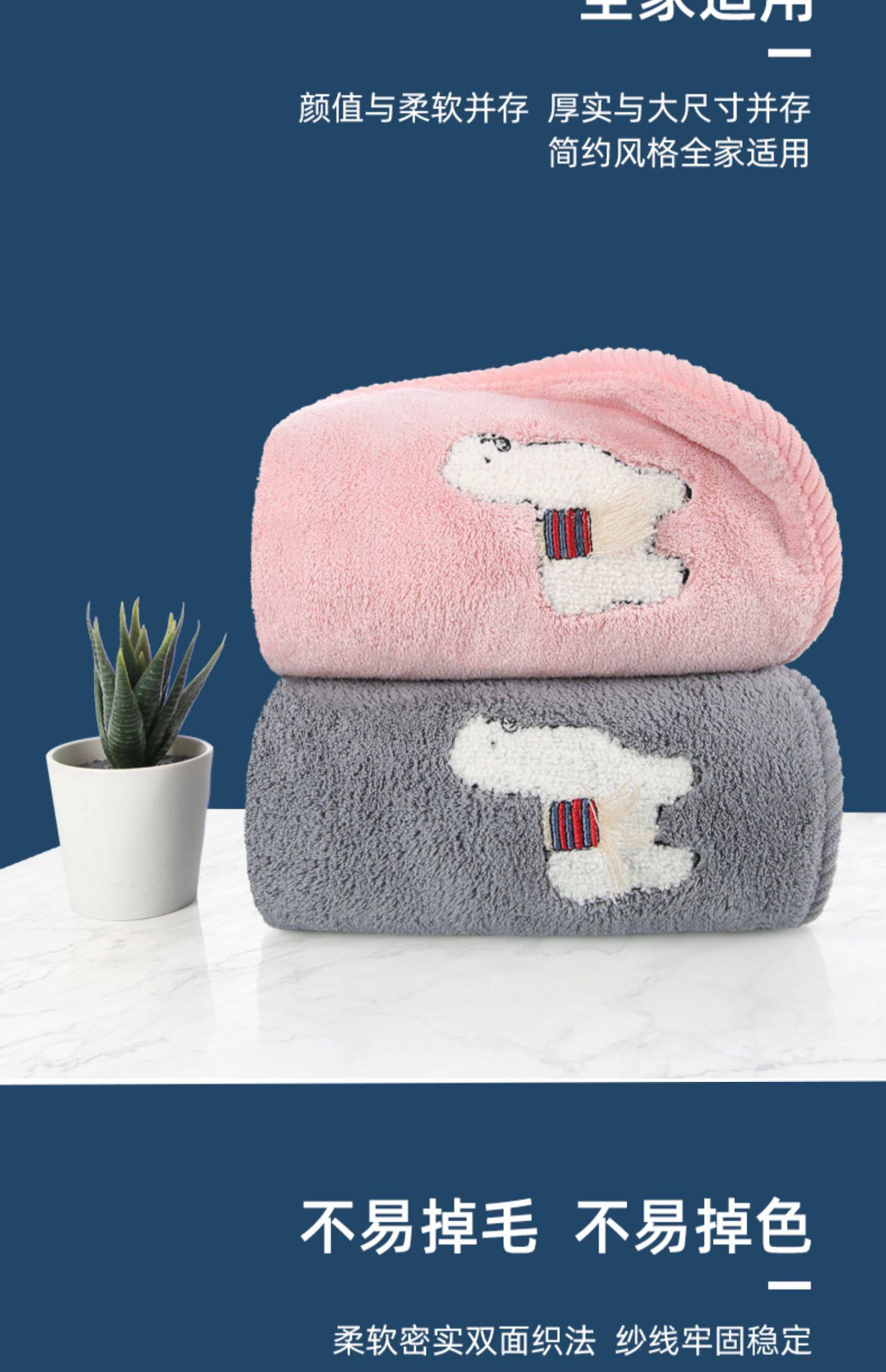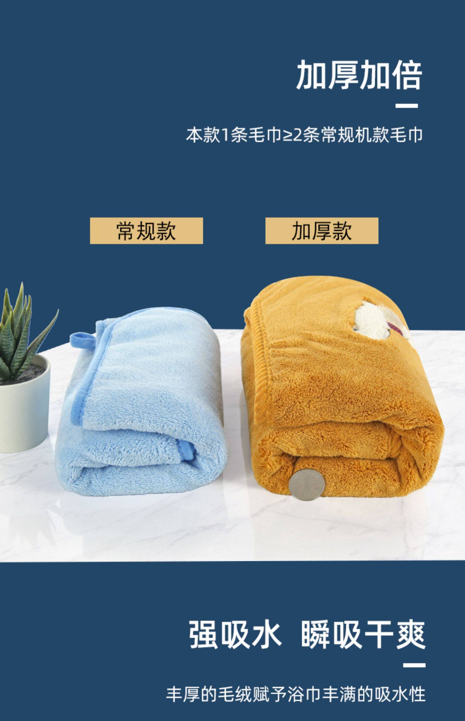 毛巾比纯棉吸水速干干发巾珊瑚绒家用女洗澡加大号加厚擦头发洗脸