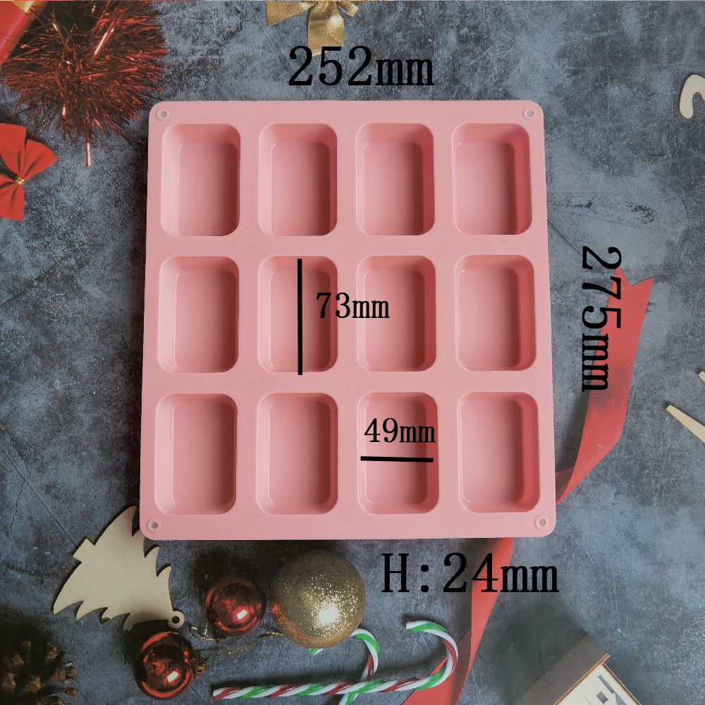硅胶12连长方肥皂模具蛋糕布丁香薰DIY月饼慕斯蜡片烘焙工具
