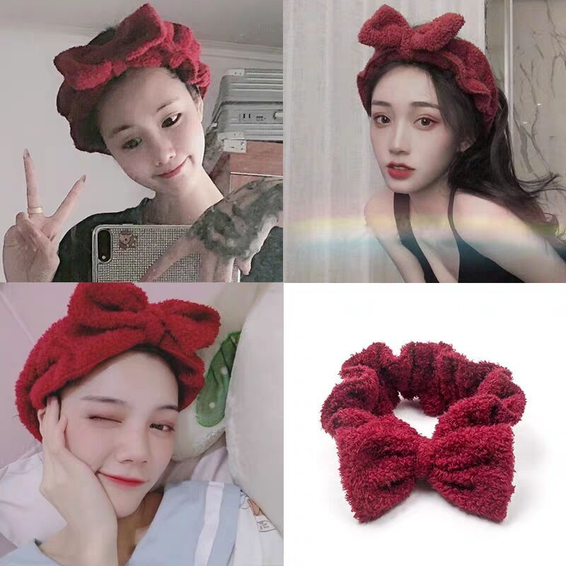 韩版新款洗脸发带束发带网红蝴蝶结甜美毛绒发箍宽边超仙可爱发饰 投诉