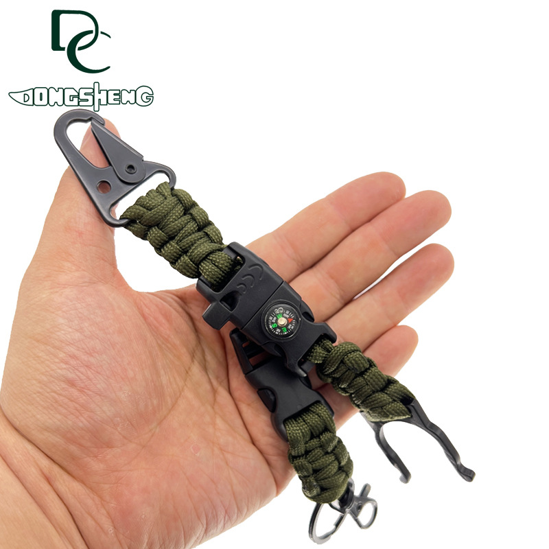 必要时可以拆开当作一段绳子用(伞绳直径4毫米,长度1.8米左右)用于拖车、急救。所用的材料都是伞绳特用、与海船用的绳子一样,具有耐腐蚀、抗老化等优点、单绳拉力在280斤左右!