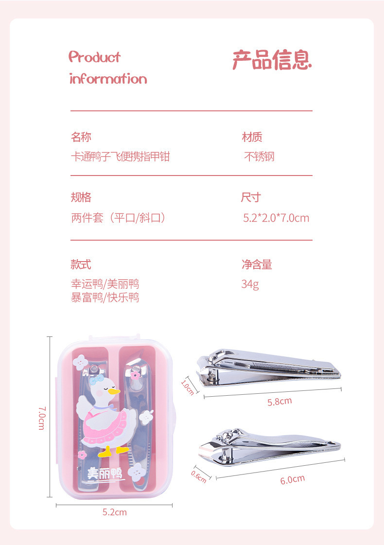 卡通少女可爱便携美甲指甲钳套装一件代发婴儿儿童不锈钢指甲刀 投诉