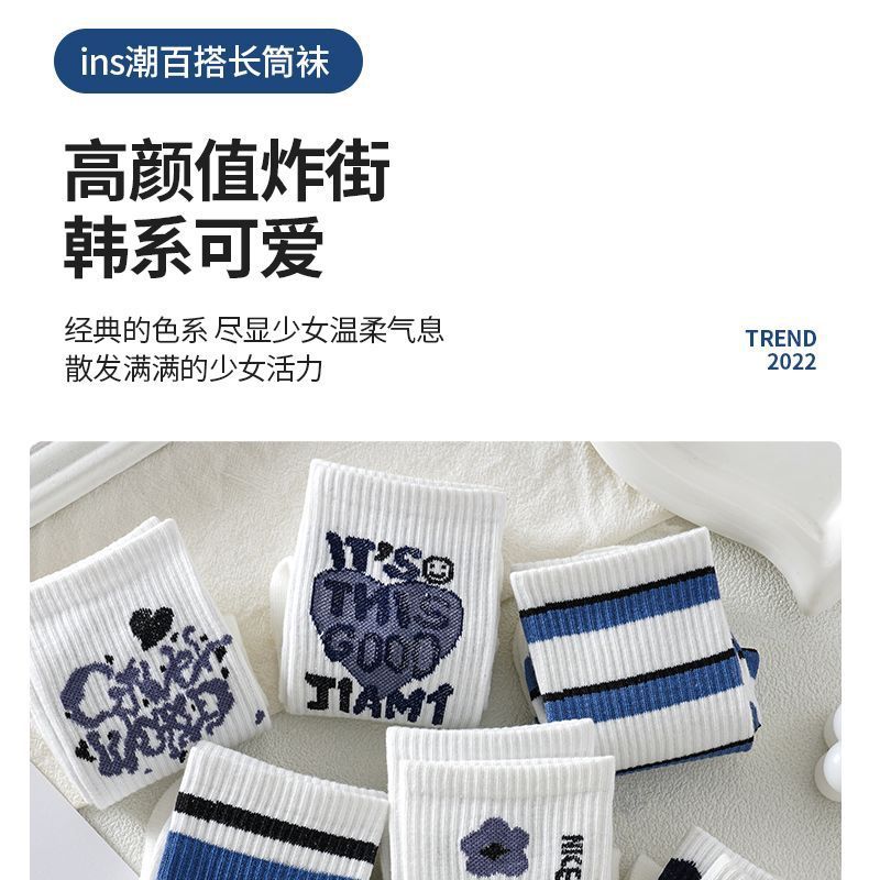 袜子女秋冬款中筒高颜值炸街百搭长筒可爱女生ins潮高腰无骨长袜 投诉