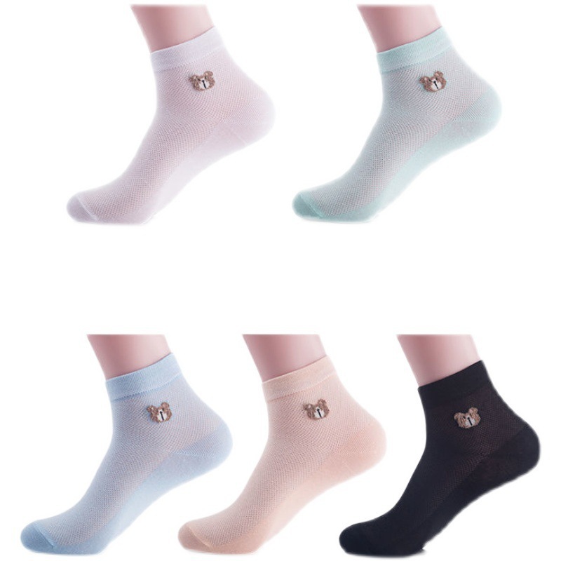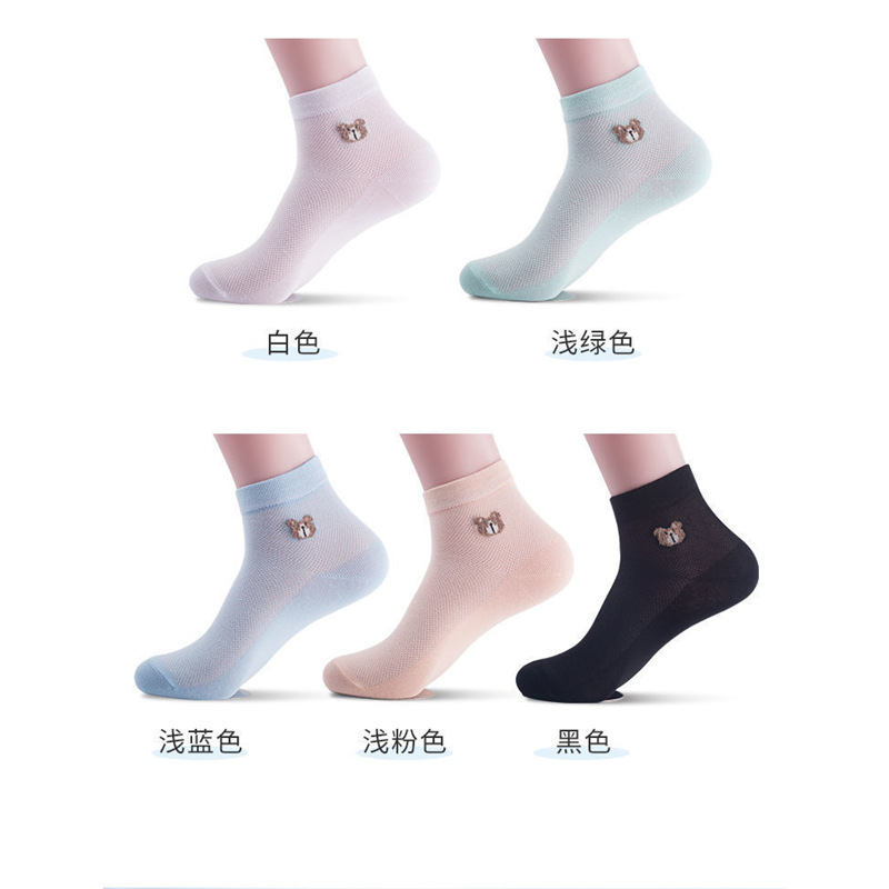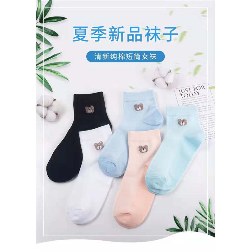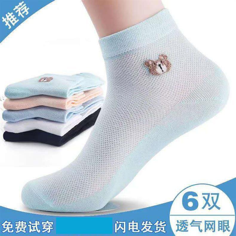 女士短袜棉夏季网眼小熊袜防臭吸汗薄款透气百搭韩版厂家直发