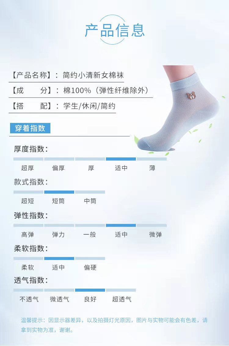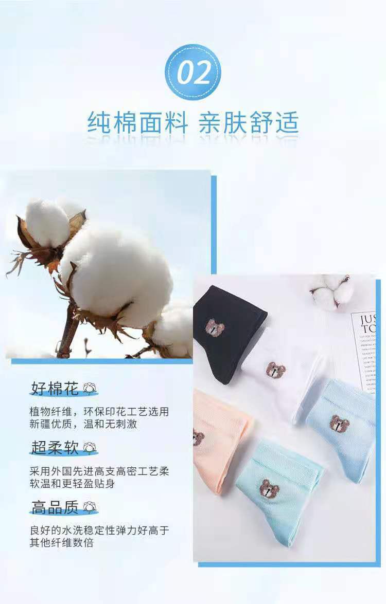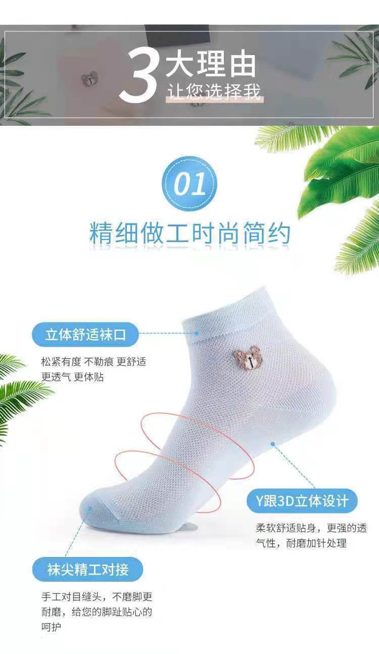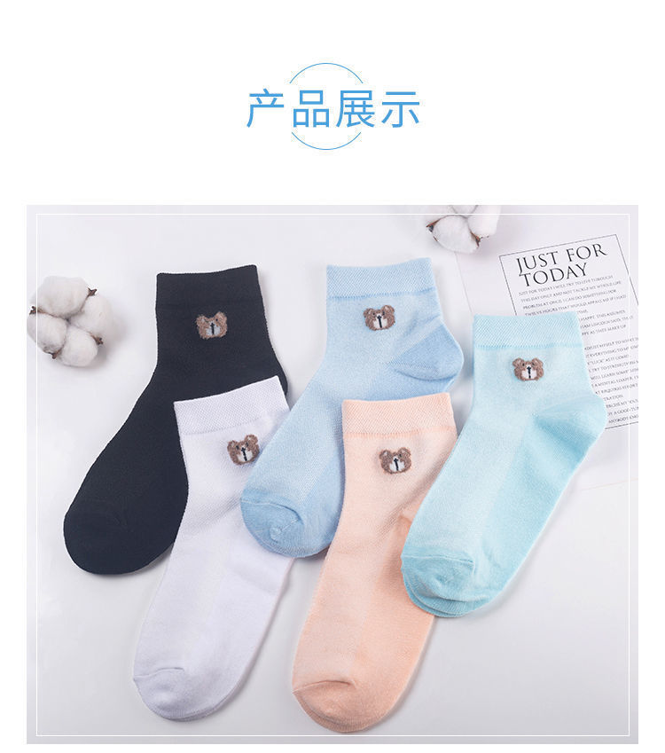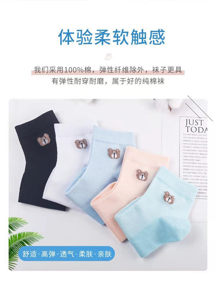 女士短袜棉夏季网眼小熊袜防臭吸汗薄款透气百搭韩版厂家直发 投诉