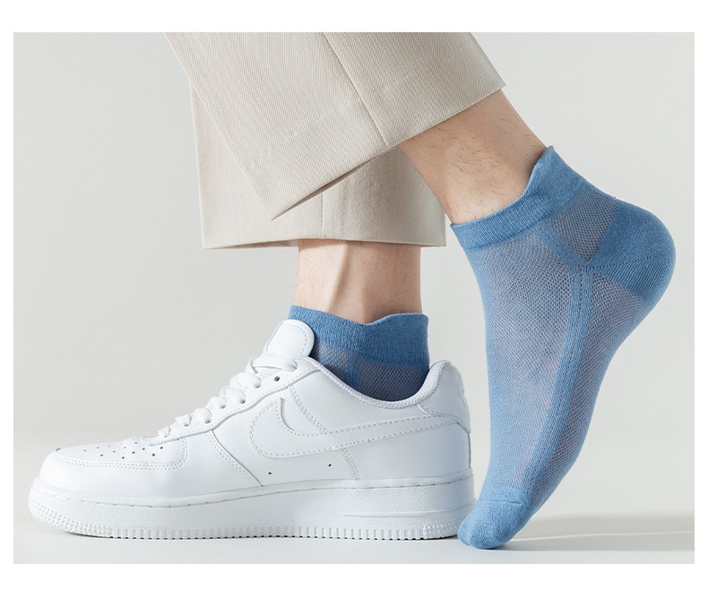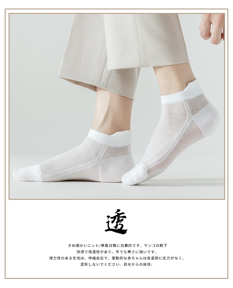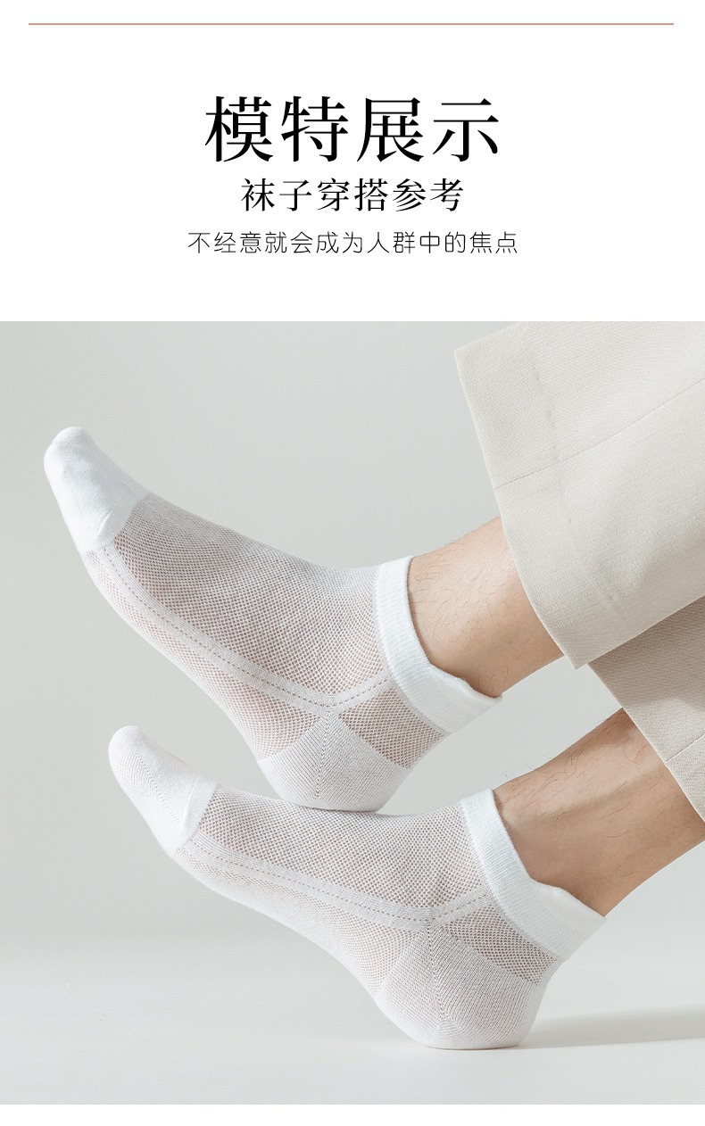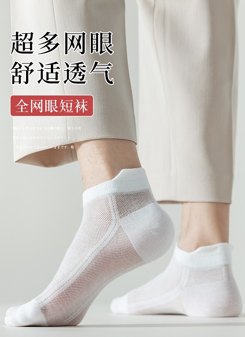 袜子男白色短袜春季夏天薄款吸汗时尚提耳网眼透气男士运动短筒袜 投诉