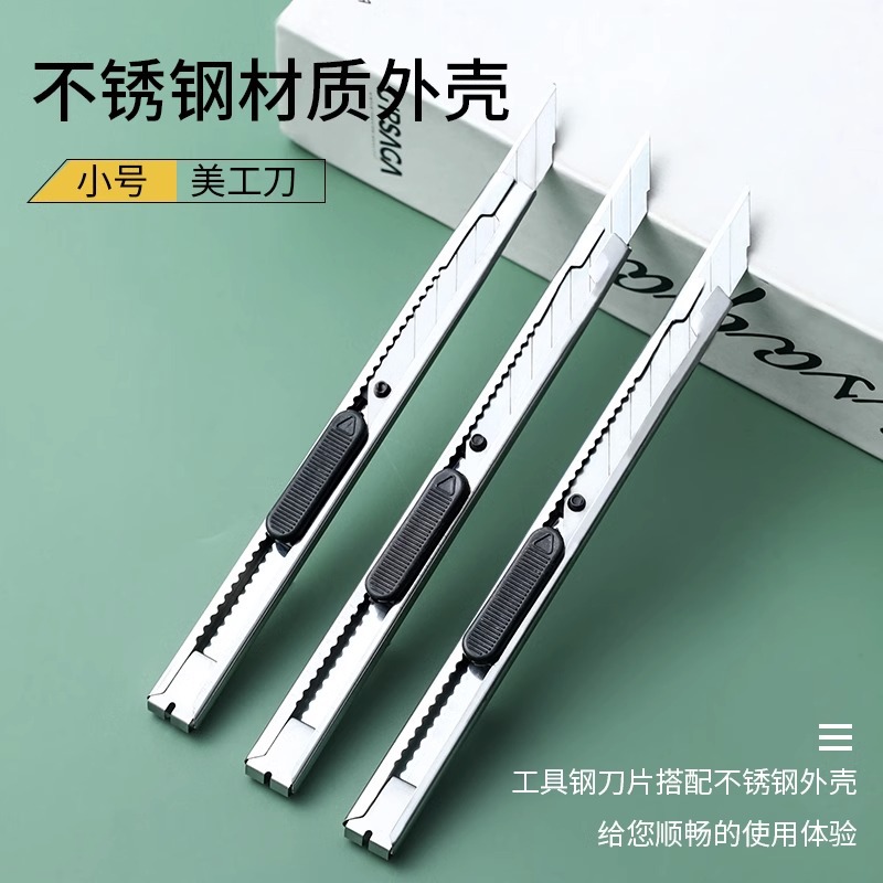 小号不锈钢美工刀批发办公金属裁纸刀学生文具手工具刀便携拆箱器