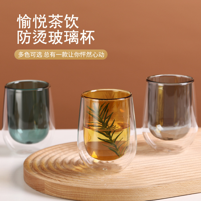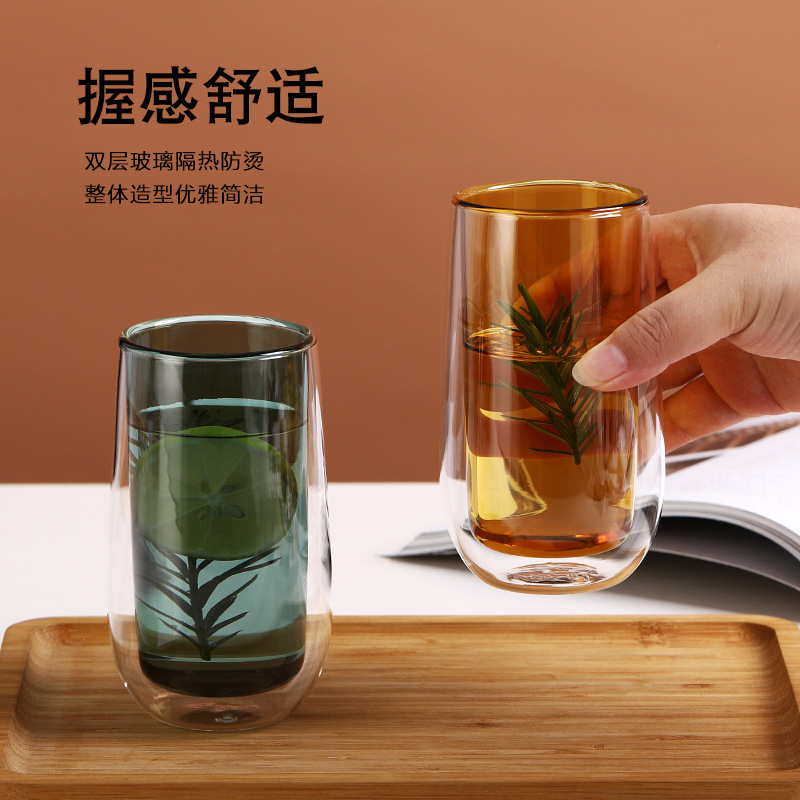 双层玻璃杯彩色透明水杯广告礼品咖啡杯家用ins杯子早餐杯