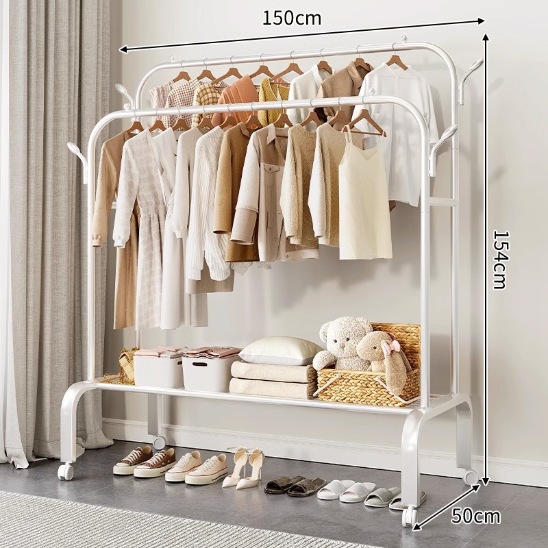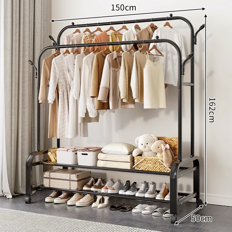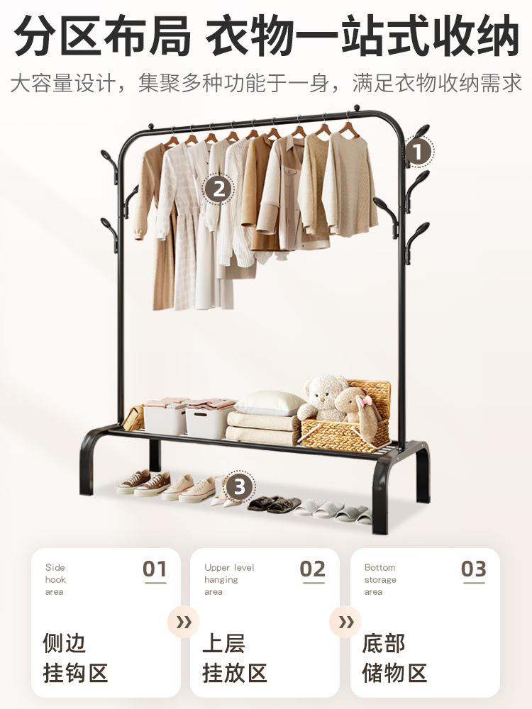 挂衣架卧室落地简易多功能家用室内晾衣架双杆衣服收纳架衣帽架