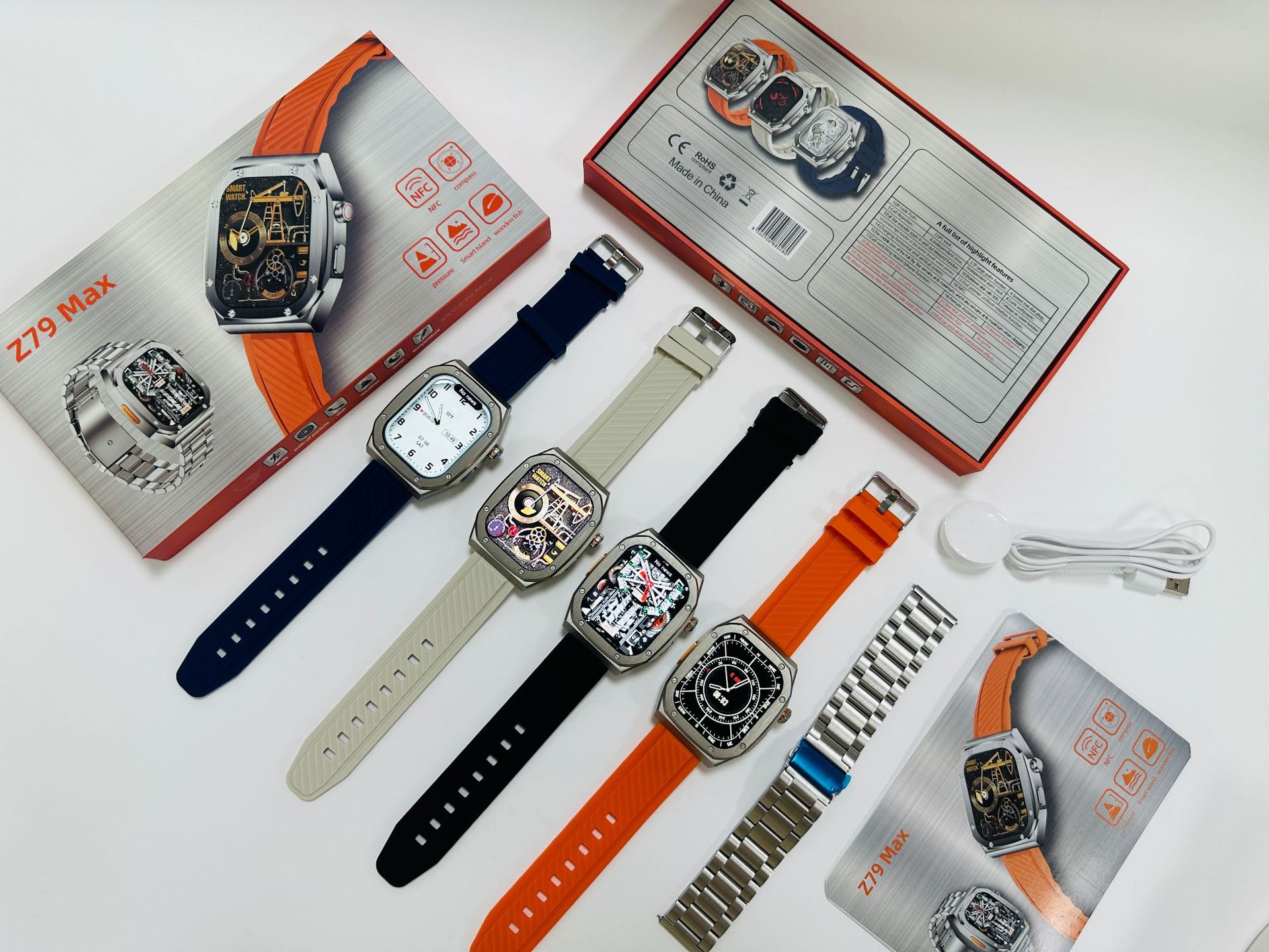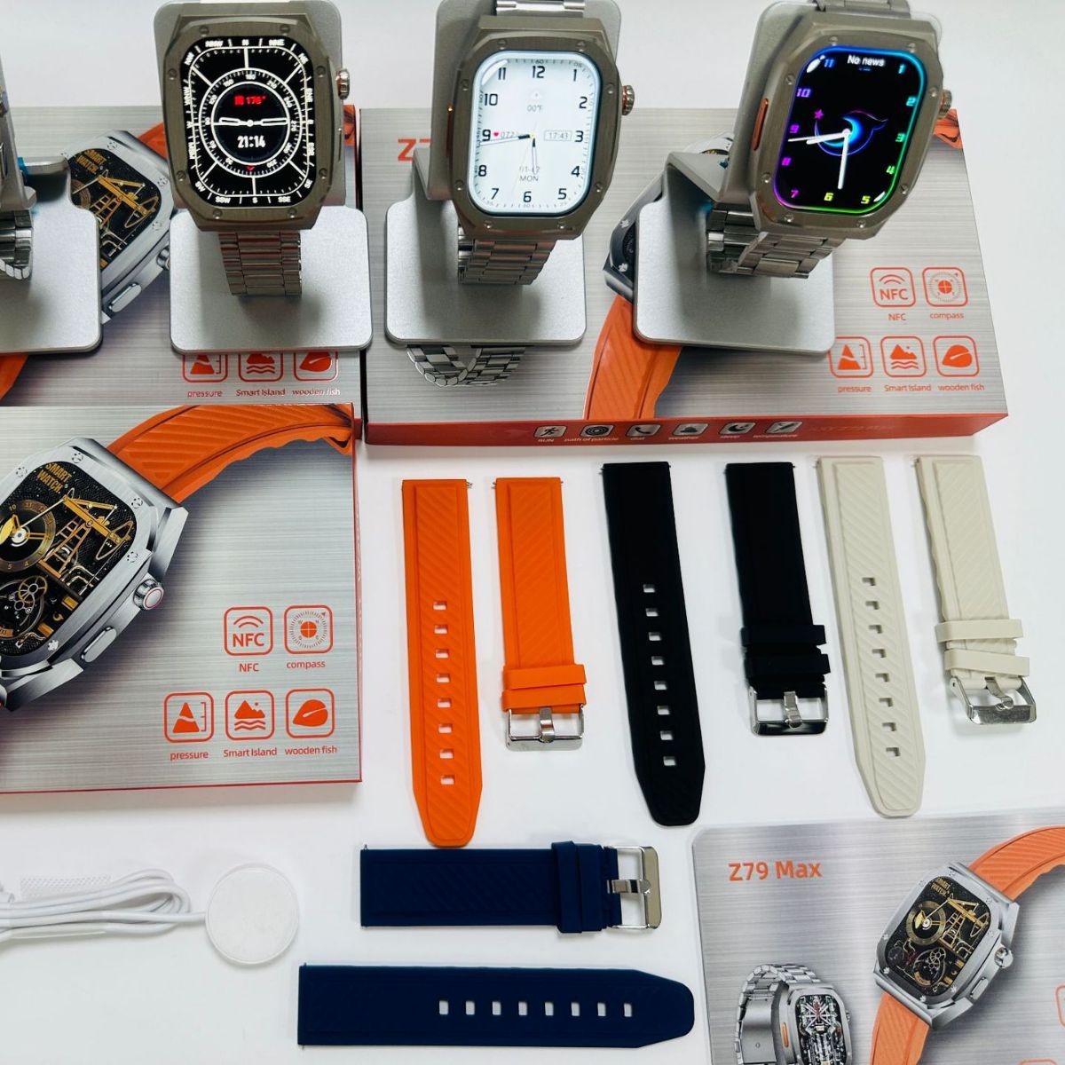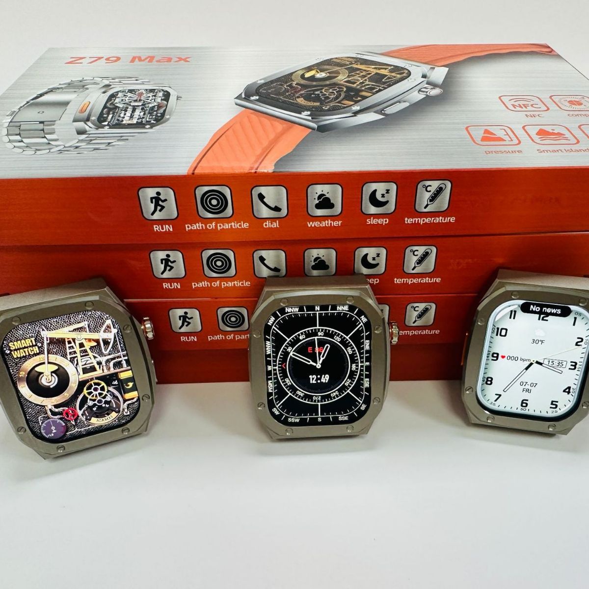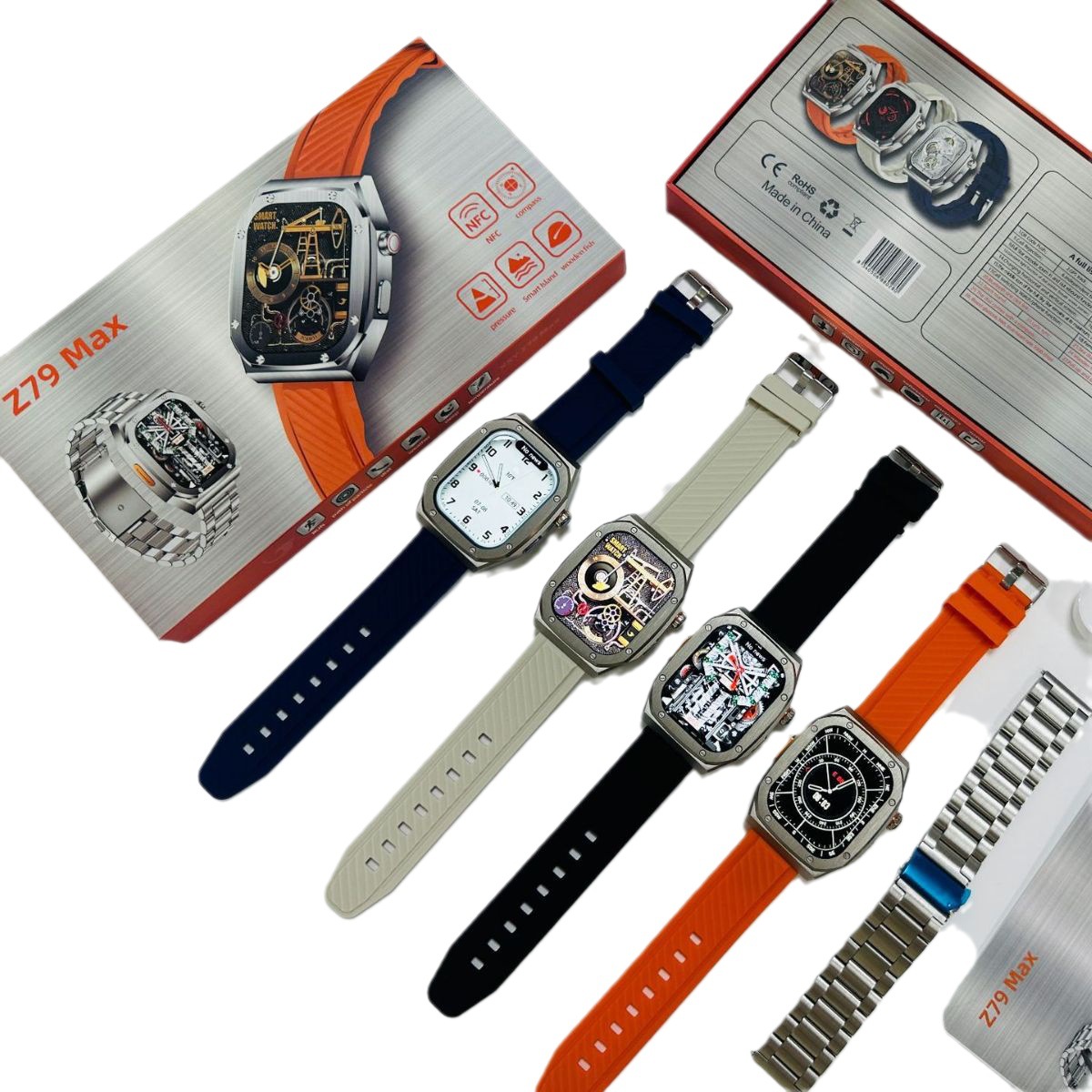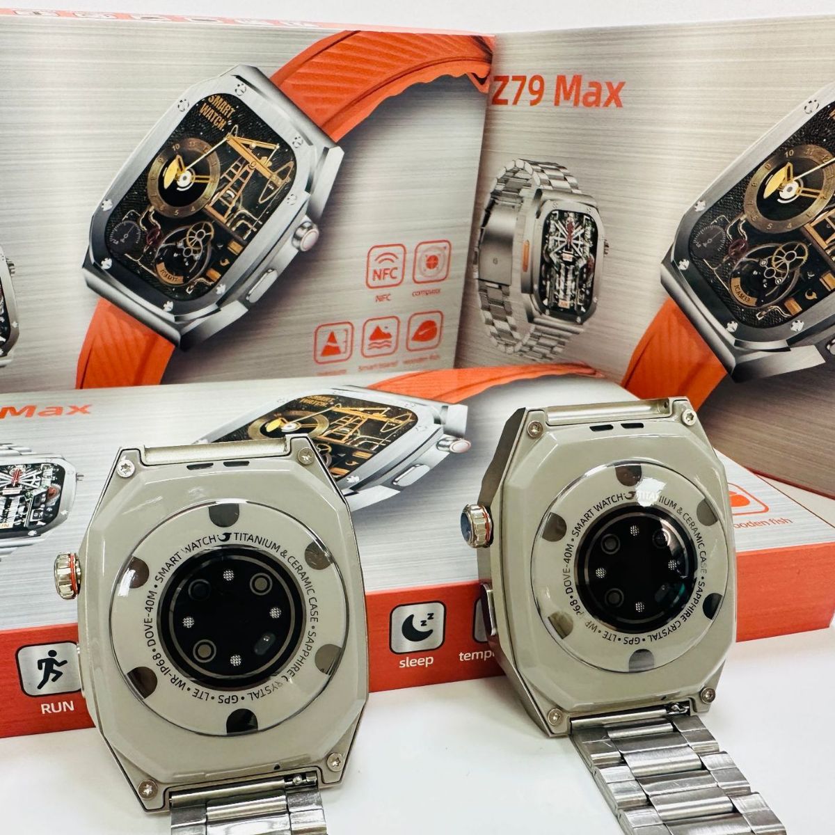 Z79MAX 不锈钢工艺智能手表蓝牙一键链接真心率灵动岛NFC双表带