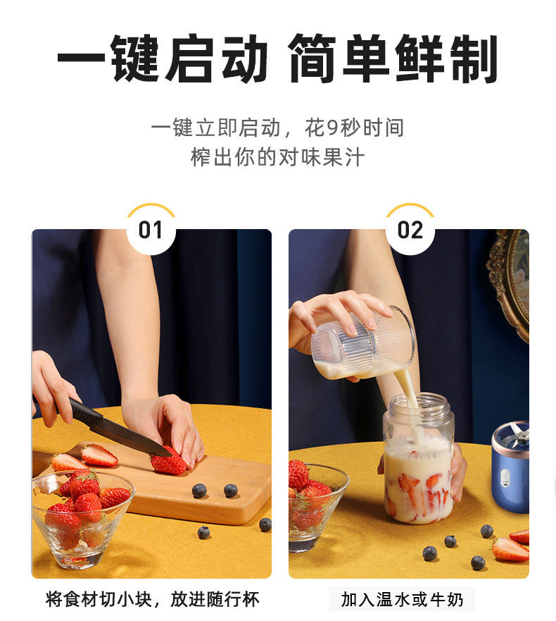 户外家用小型便携式无线充电榨汁机学生多功能六刀头旅行果汁机杯 English | 投诉