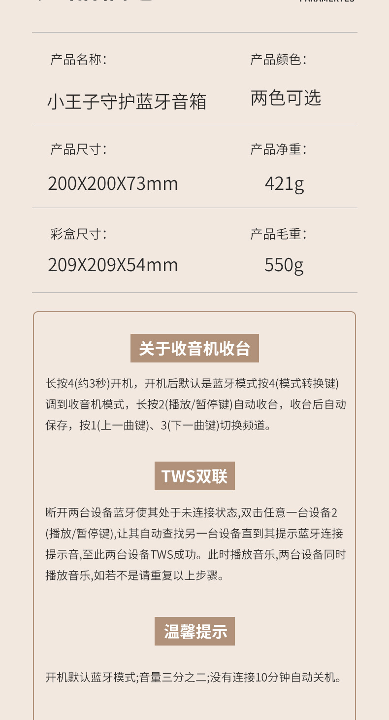 小王子蓝牙音箱新款七夕情人节礼物小音响迷你低音炮氛围夜灯音响 投诉