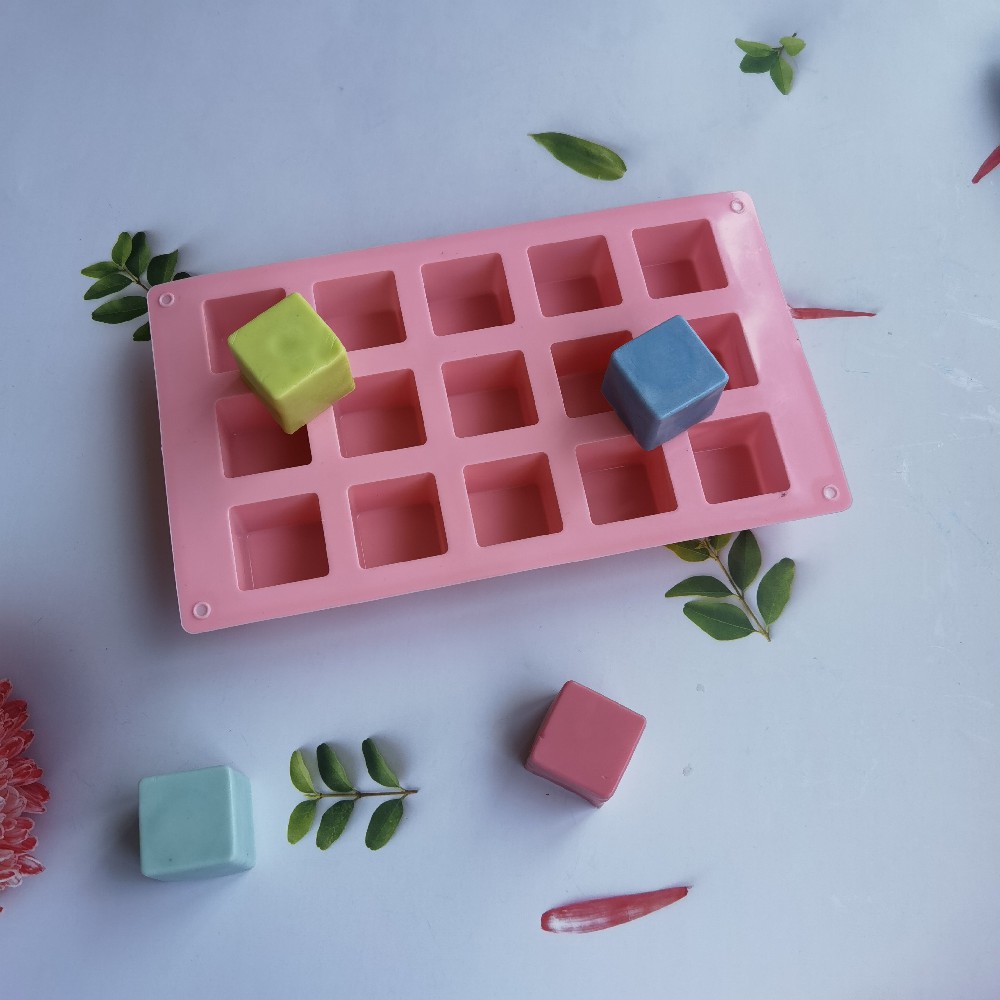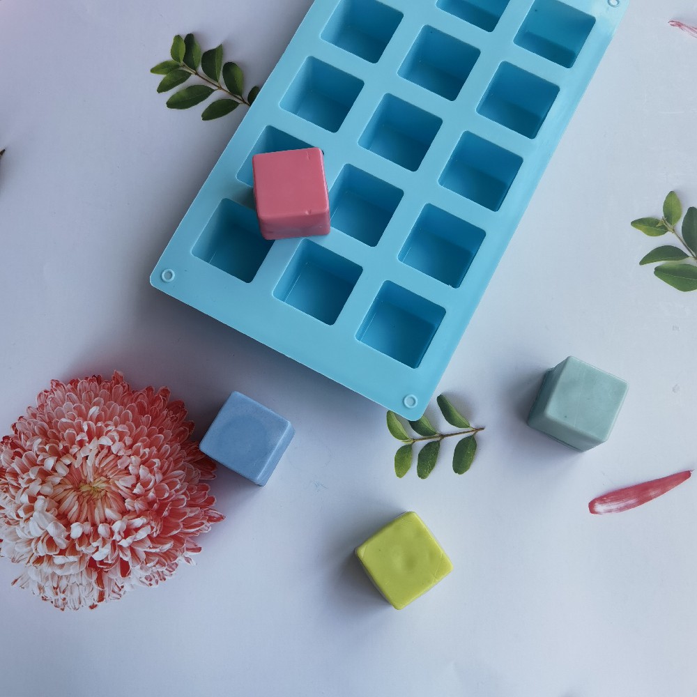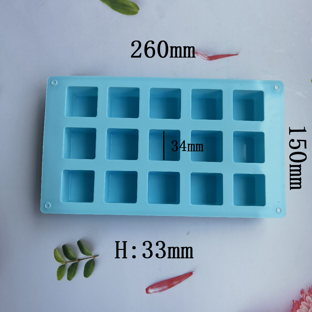 硅胶15连方块肥皂模具蛋糕布丁香薰DIY月饼慕斯蜡片烘焙工具 English | 投诉