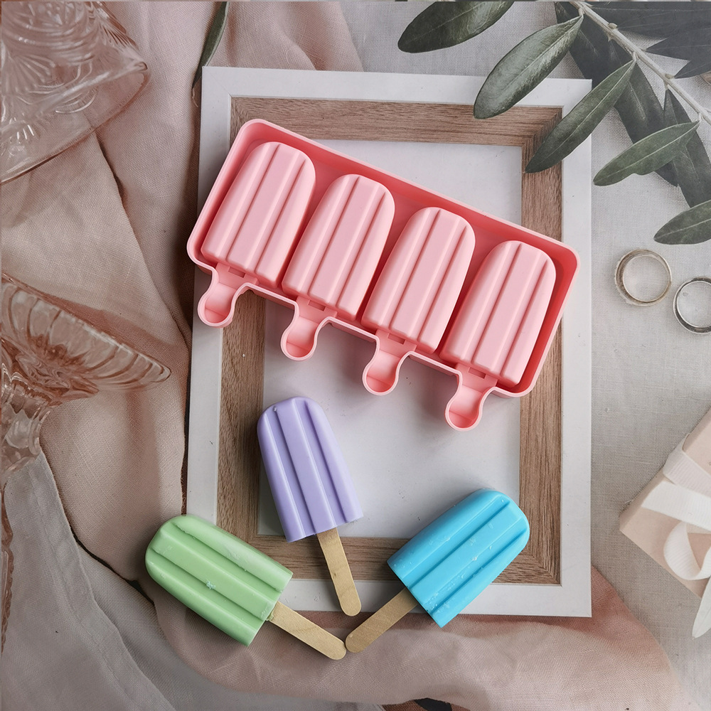 硅胶4连双凹槽雪糕模具雪糕冰淇淋模具自制冰格模冰棍模具 English | 投诉