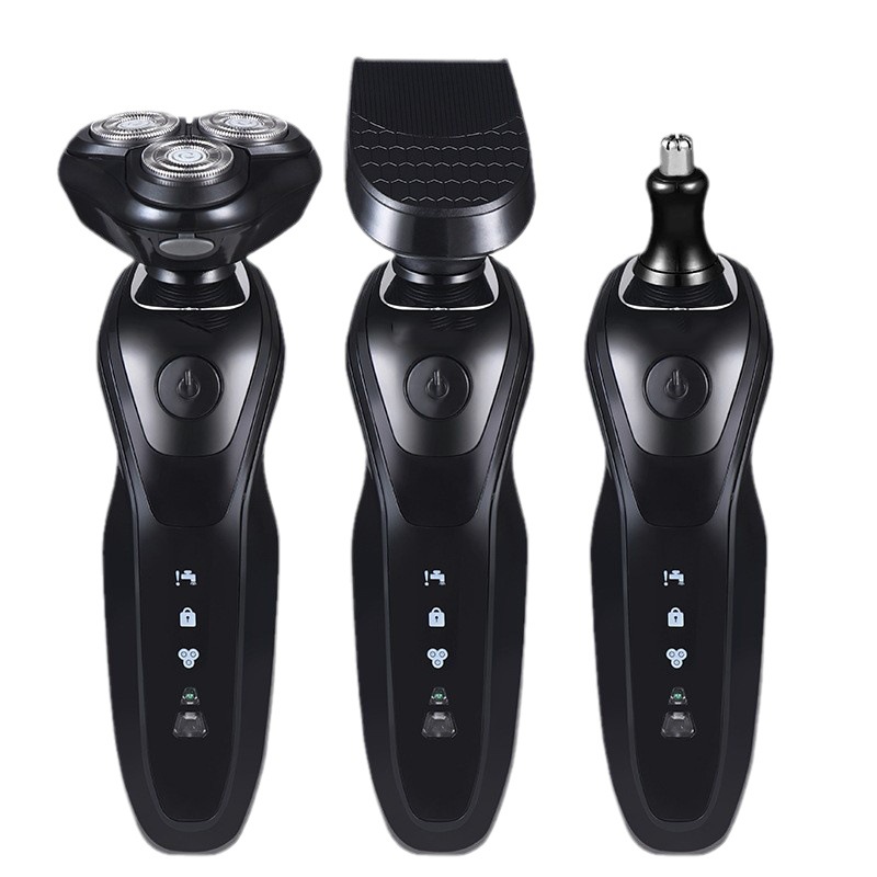 款式三:四合一组合装(内含:主机身+毛刷+充电线+鬓毛刀+鼻毛修剪器+洁面器+说明书合格证,剃须 鬓毛修理 鼻毛修剪器 洁面 四合一功能)