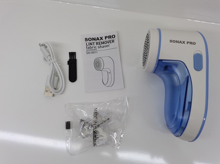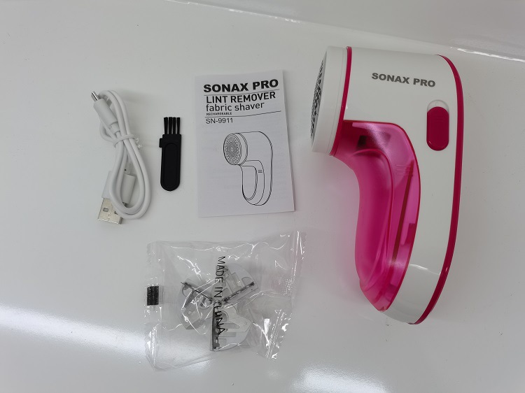套装内含:毛球机一个, 备用刀头,小刷子,USB充电线,全英文说明书