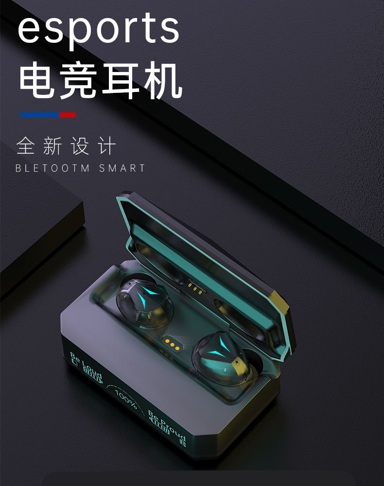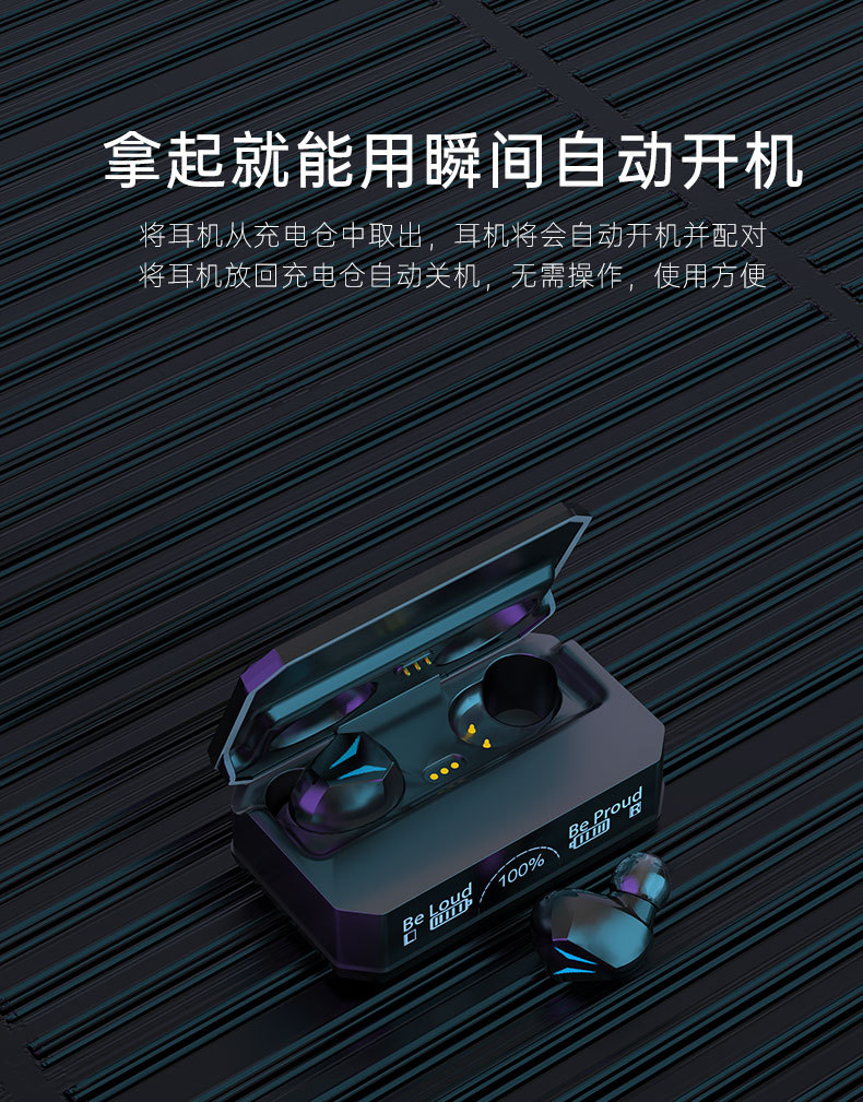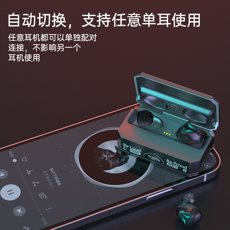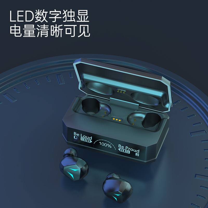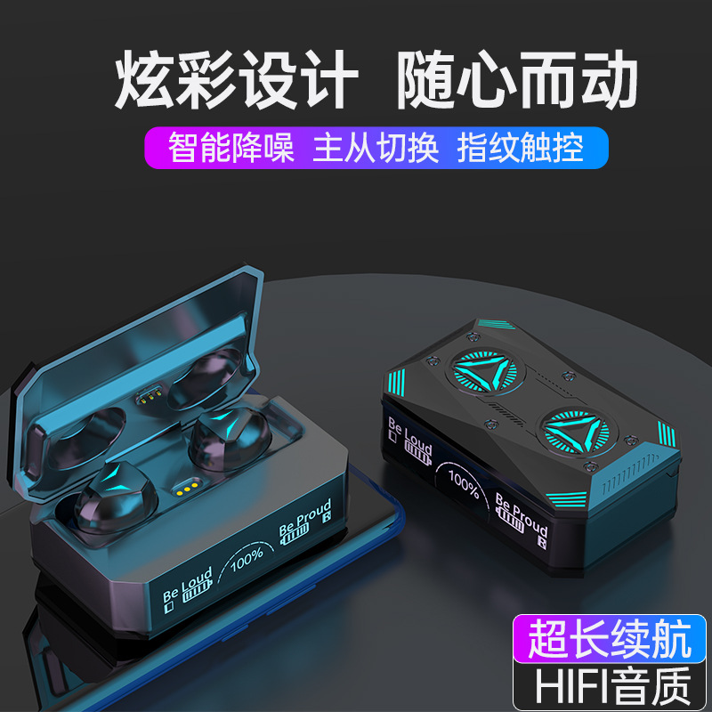 新款私模M98无线蓝牙耳机TWS入耳式数显长续航运动机甲耳机呼吸灯