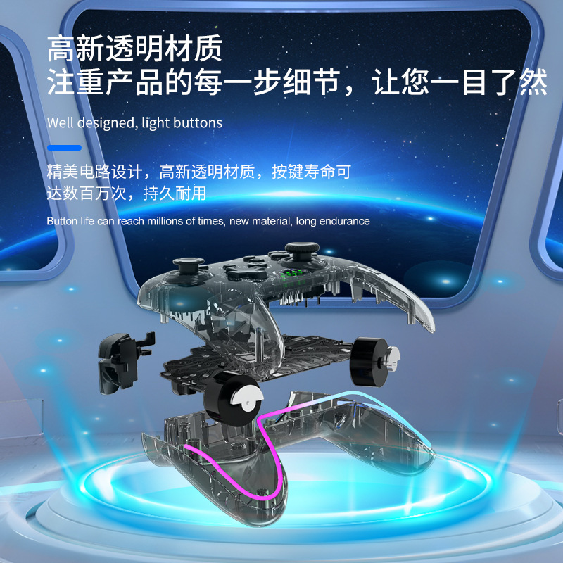 透明带灯Switch手柄6轴震动唤醒连发蓝牙无线Switch游戏手柄
