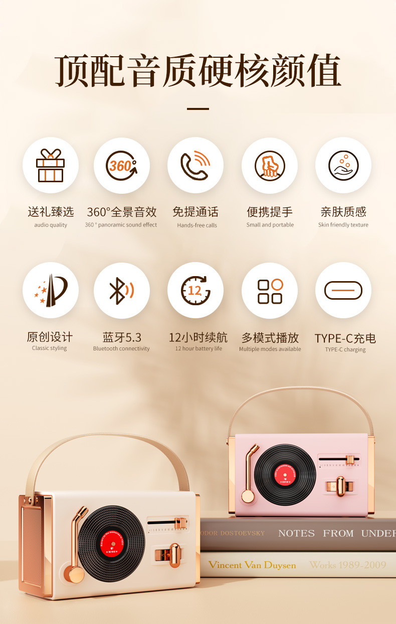 复古迷你唱片无线蓝牙音箱迷你便携式新款低音炮户外小音响礼品款 投诉