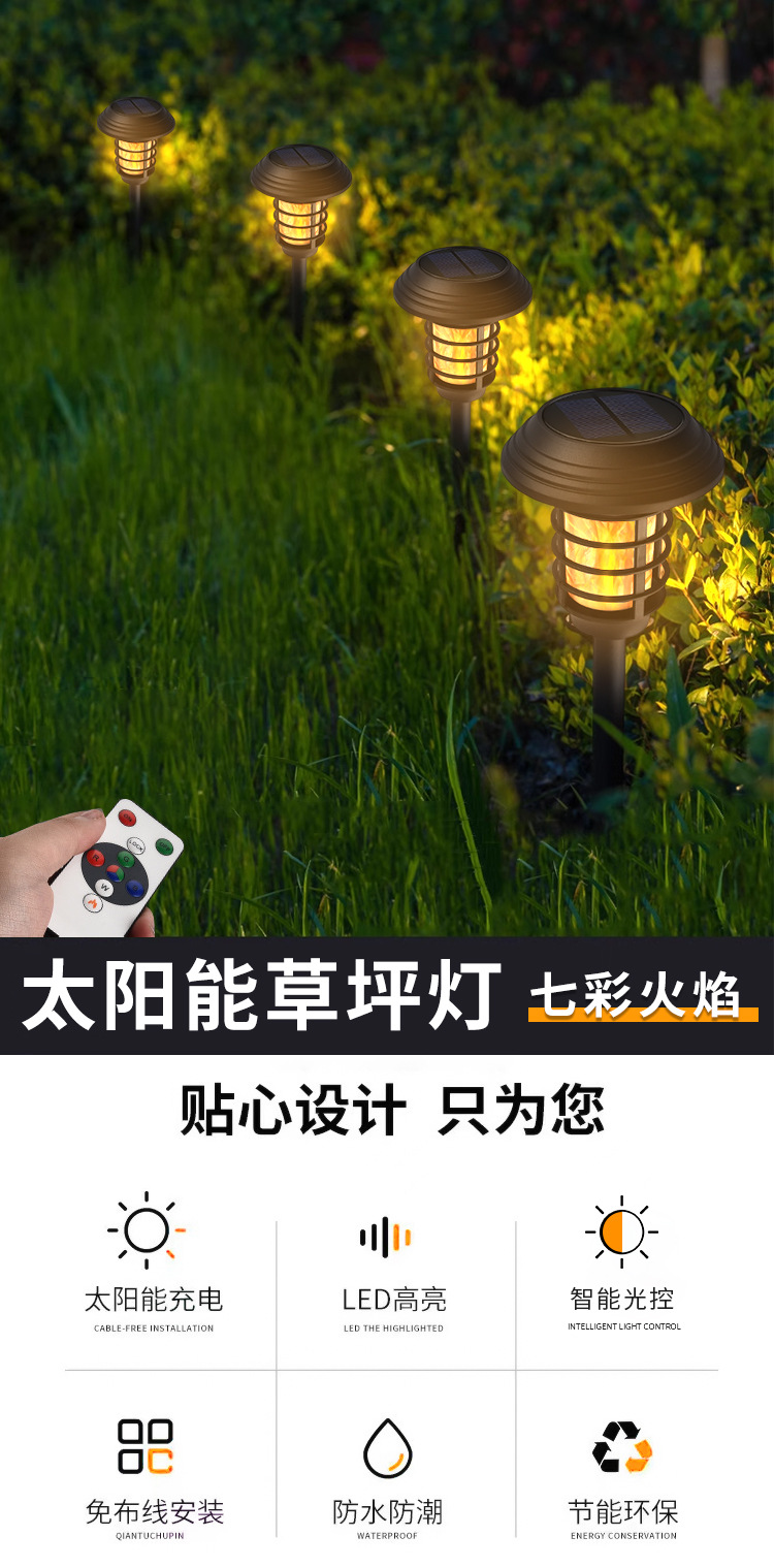 跨境新款火焰灯庭院户外防水景观草坪灯花园装饰照明太阳能地插灯 投诉