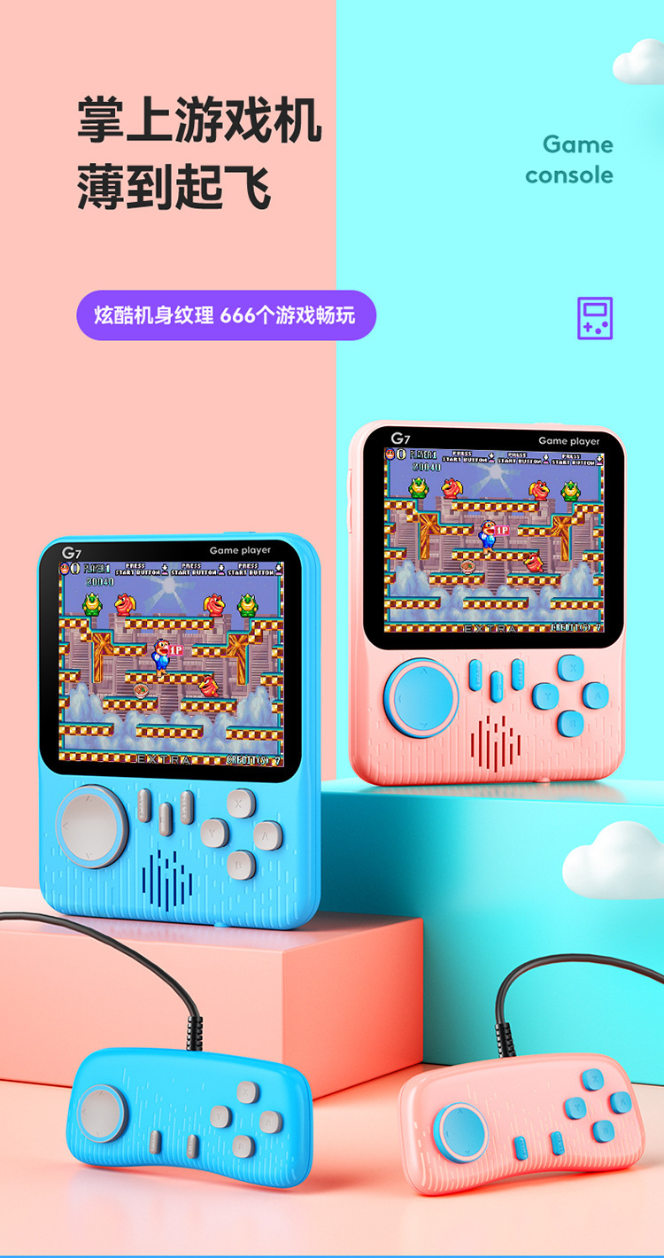 跨境马卡龙G7超薄掌上游戏机掌机666复古游戏双人3.5寸便携游戏机