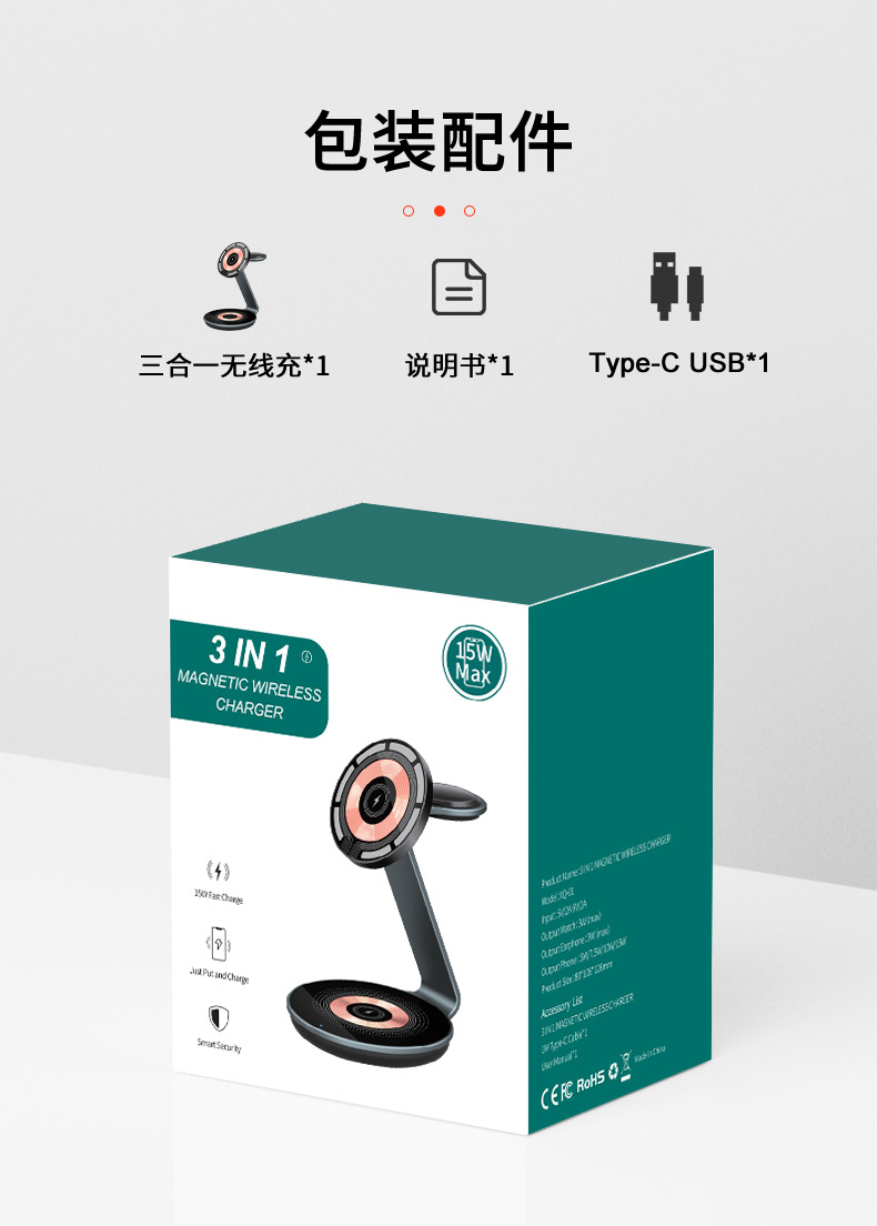 产品输出:手机5W/7.5W/10W/15W;耳机与手表3W(Max)