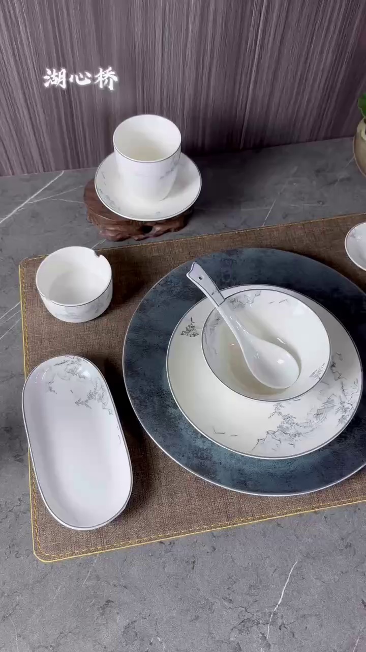 青烟袅袅系列陶瓷餐具套装,结合了釉上彩和贴花工艺技法,制作出丰富饱满,带有独特金属光泽感的色泽,宛如青烟缭绕的感觉。