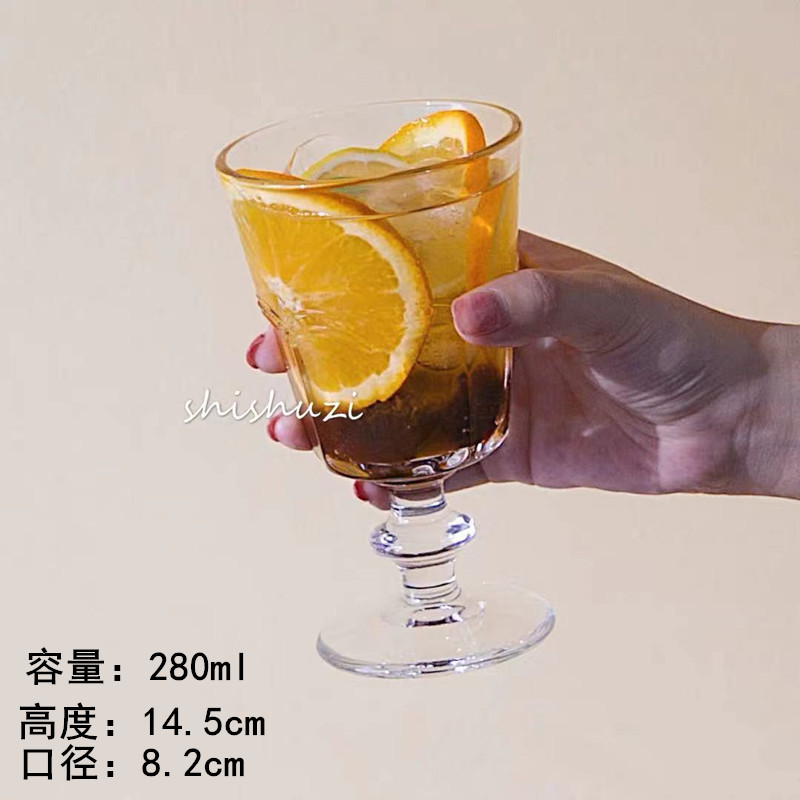 复古高脚玻璃杯高颜值酸奶杯小吃甜品杯拿铁咖啡杯饮料杯