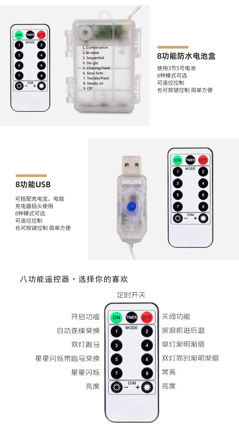| 【电池盒带遥控+USB两用】8模式10米80灯 | ¥13626 | 200件可售 |