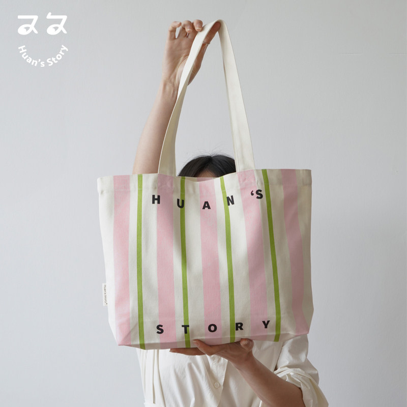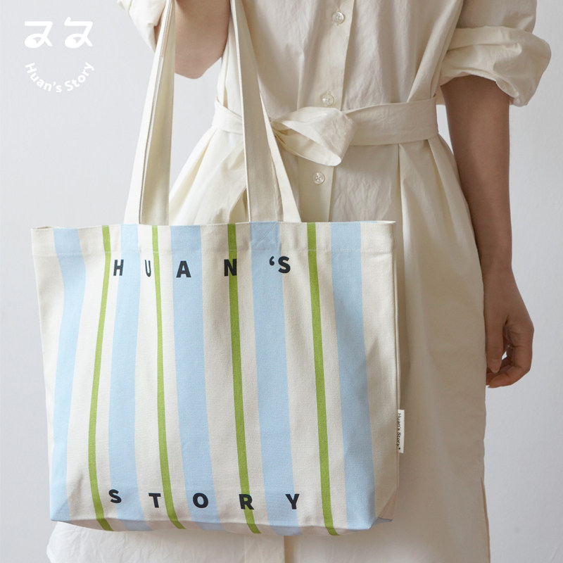 清新风帆布包 条纹帆布袋单肩包托特包简约字母手提包 帆布袋定制