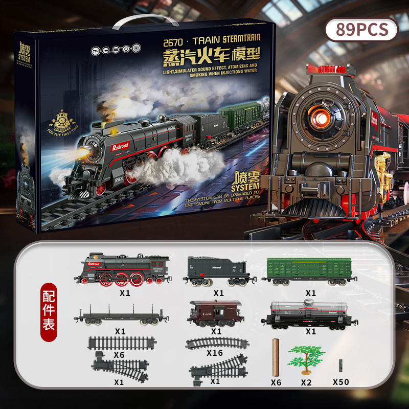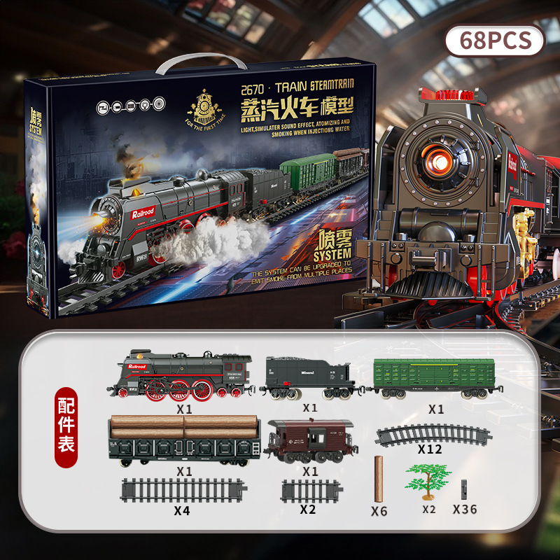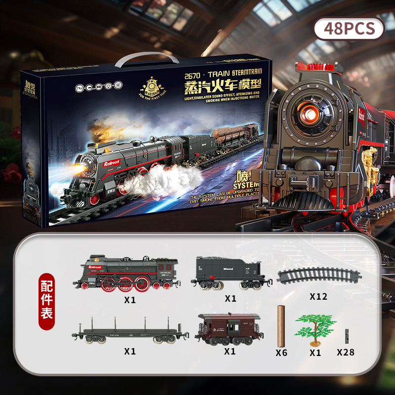 跨境复古蒸汽火车轨道套装仿真电动小火车模型男孩礼物火车玩具