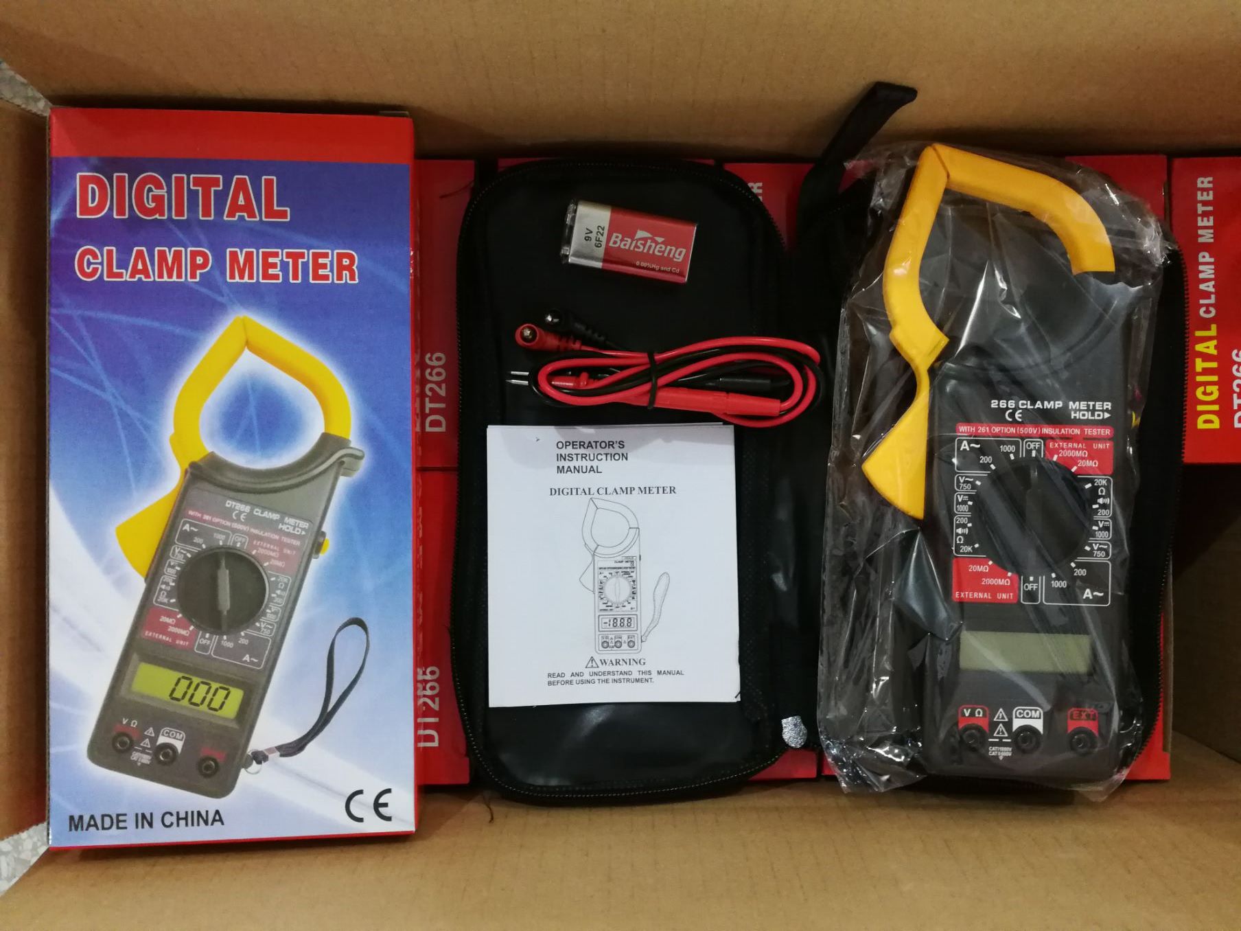 液晶显示尺寸:49x16mm 液晶最大显示值:1999 低电压符号显示:有 过载保护:有 通断检测及蜂鸣器功能:有 数据保持:有 外接拓展功能测:有 钳口口径:∮57mm 电源供应:6F22型 9V电池 产品尺寸:230x68x37mm 产品重量:约202g
