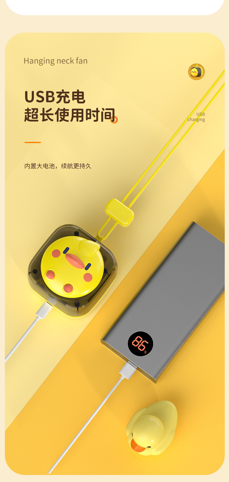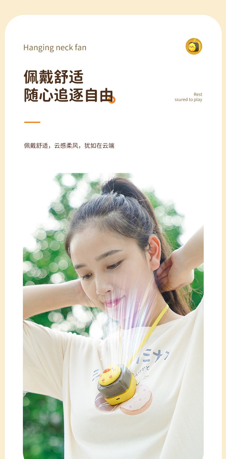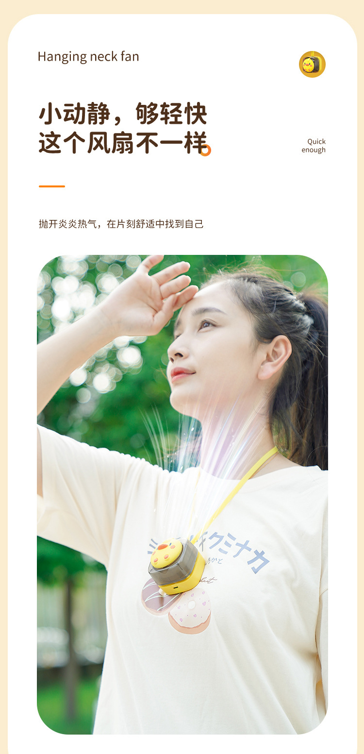 挂脖USB迷你卡通小风扇萌趣无叶挂绳风扇儿童静音便携大风力风扇 English | 投诉