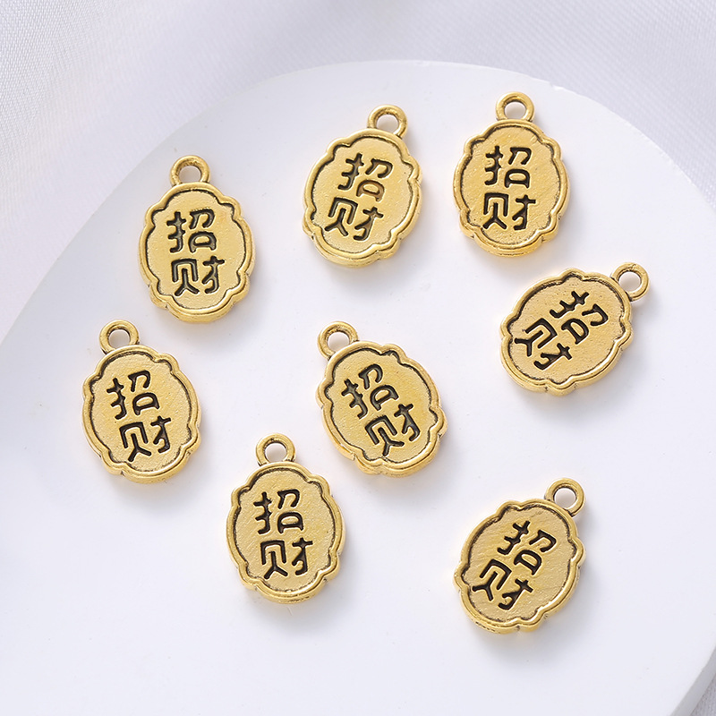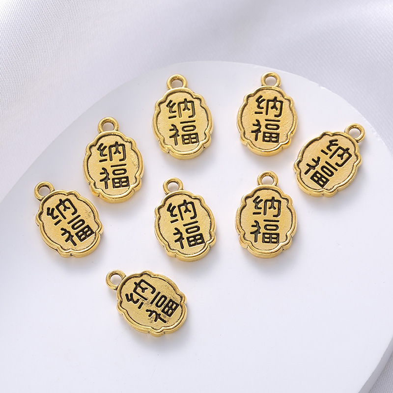 新款合金制饰品配件纳福带吊福牌民族风红绳手链吊牌配件批发