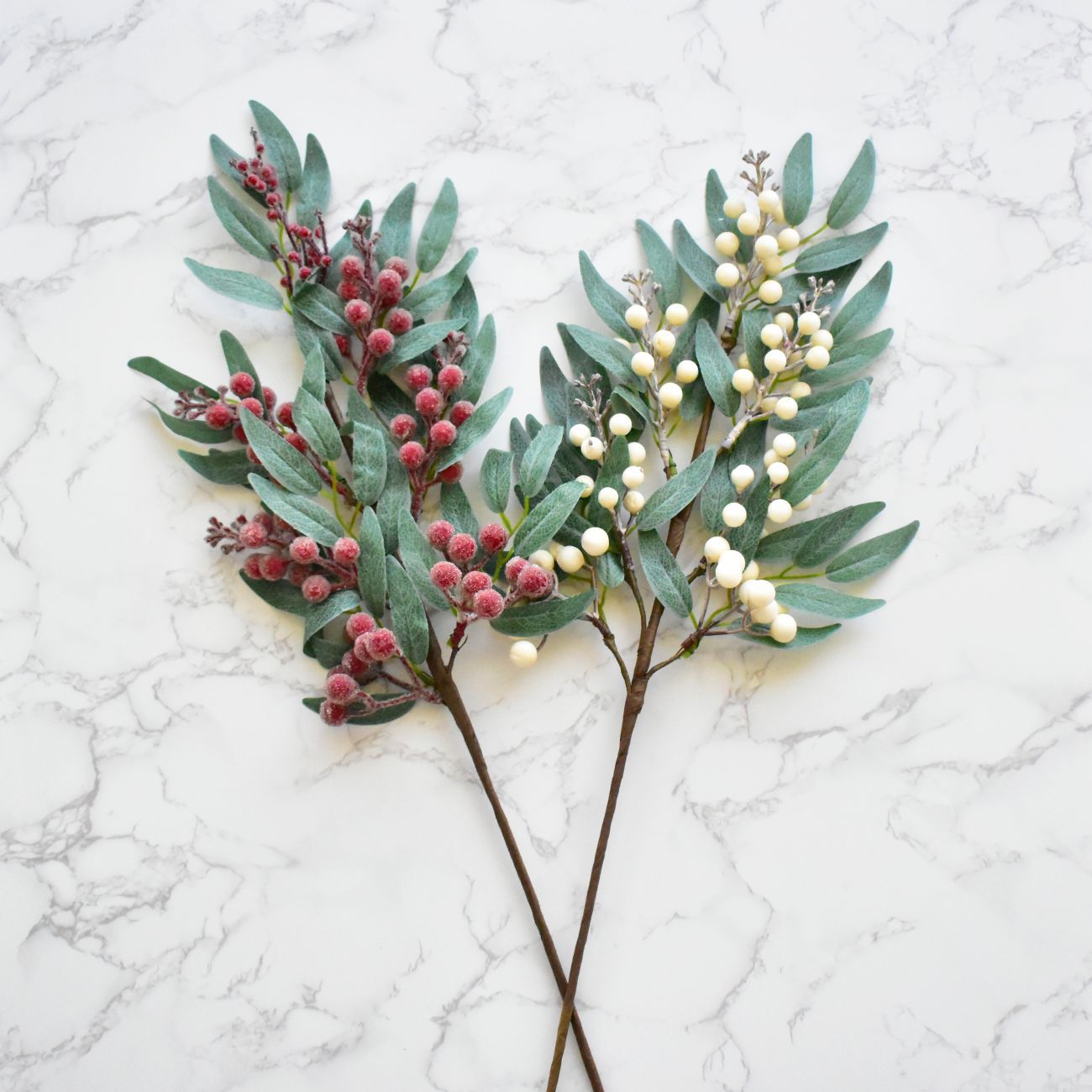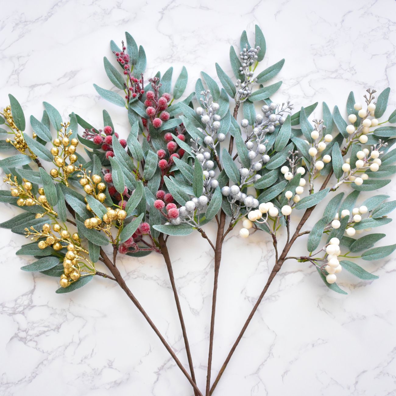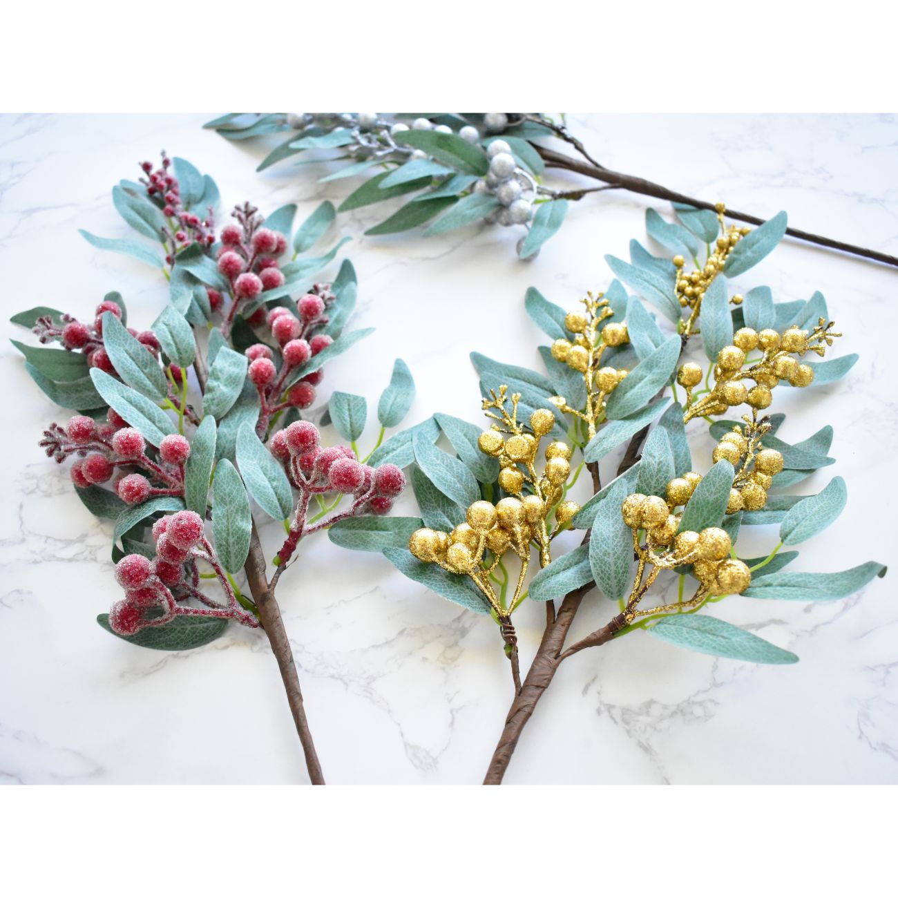 品名:浆果插枝 材质:pvc、铁丝、泡沫、闪粉、玻璃