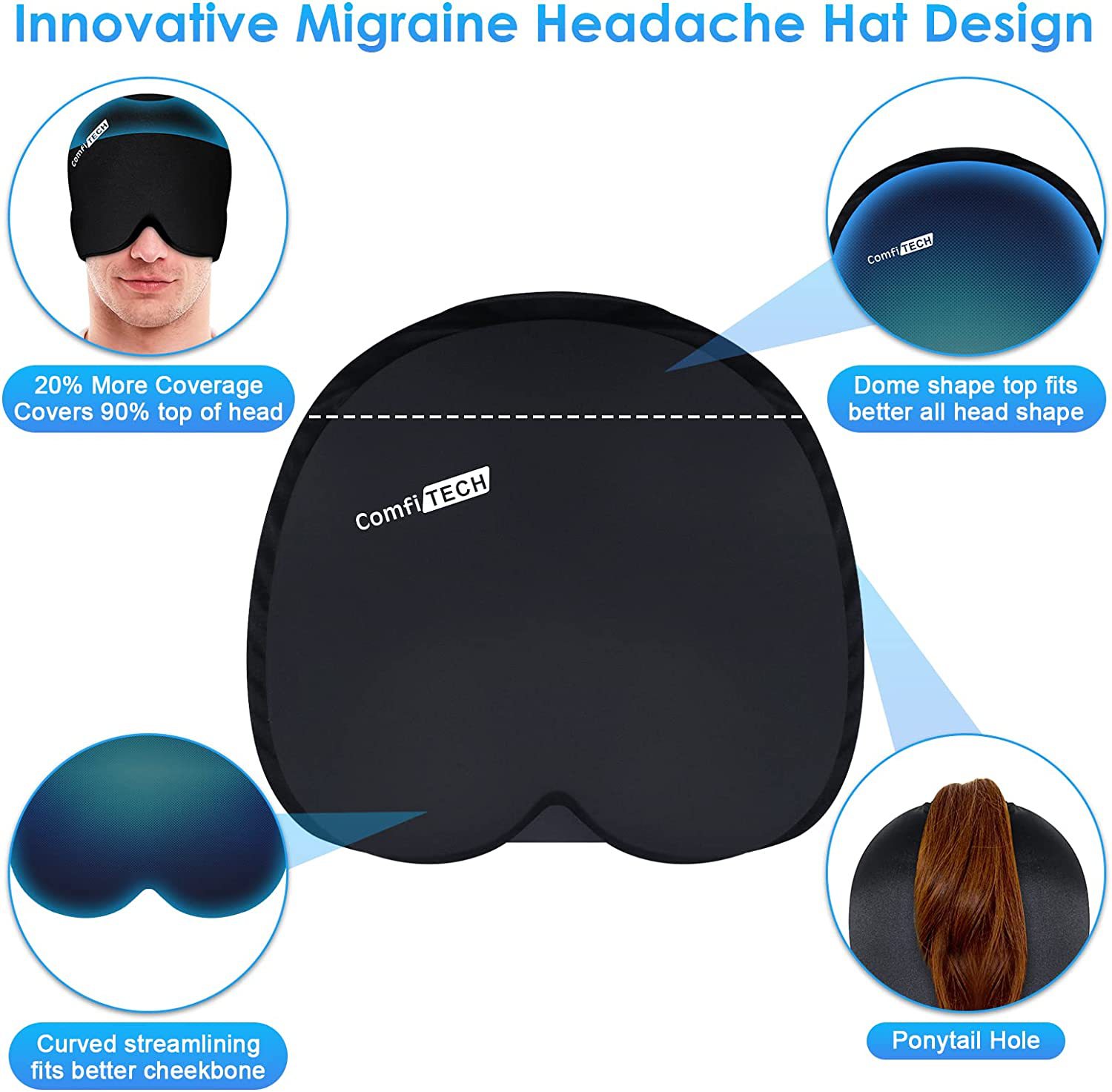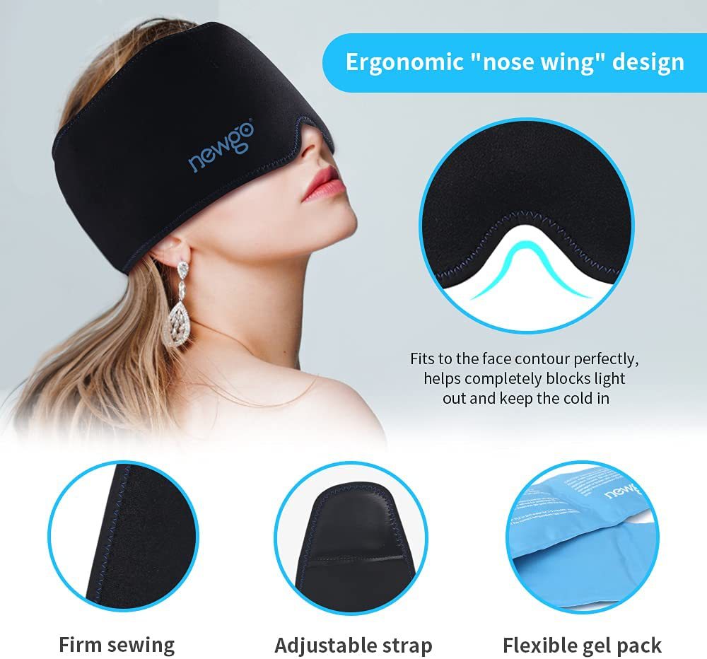 Migraine Relief Hat冷热敷头套缓解头痛冰袋眼罩冰敷帽凝胶面罩