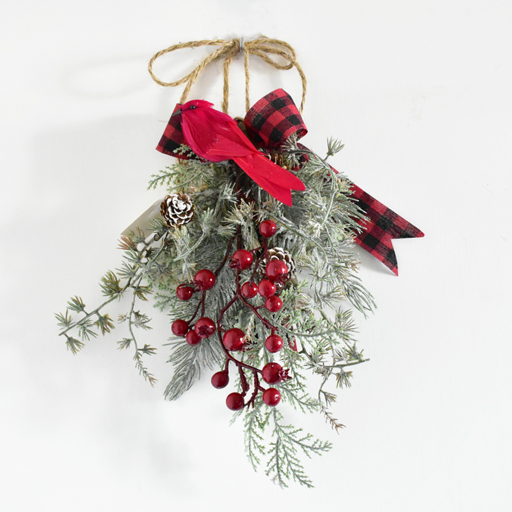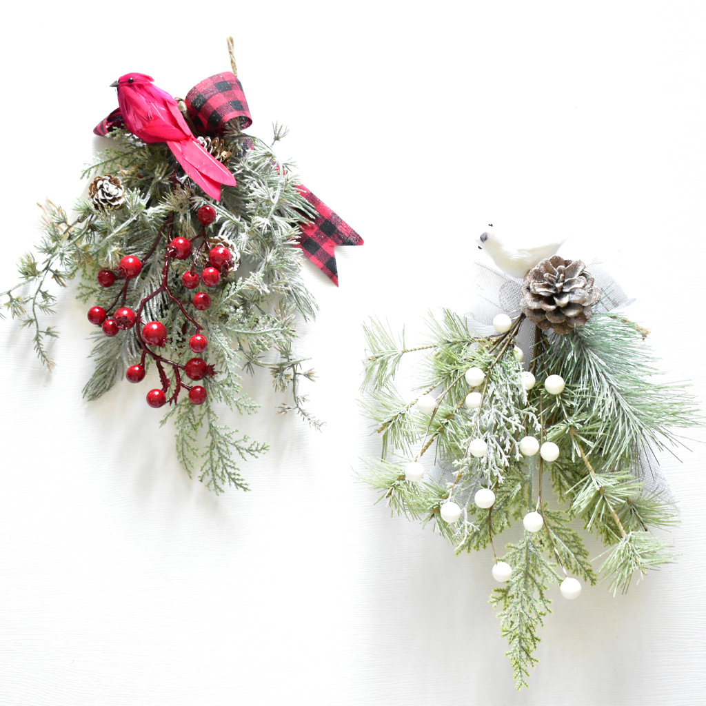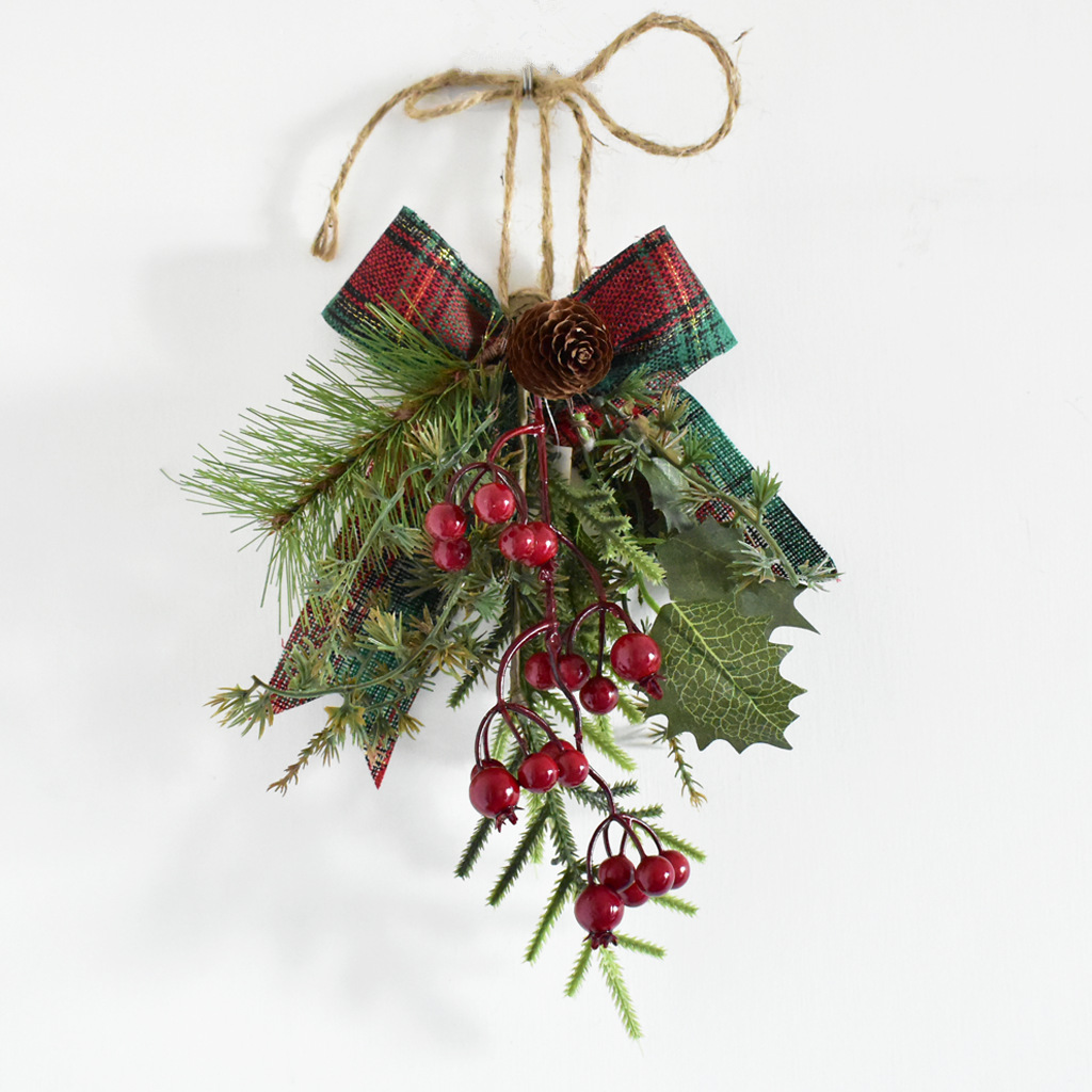 品名:圣诞挂饰 材质:PVC、泡沫、铁丝、松果、纸